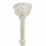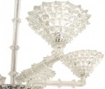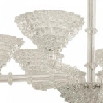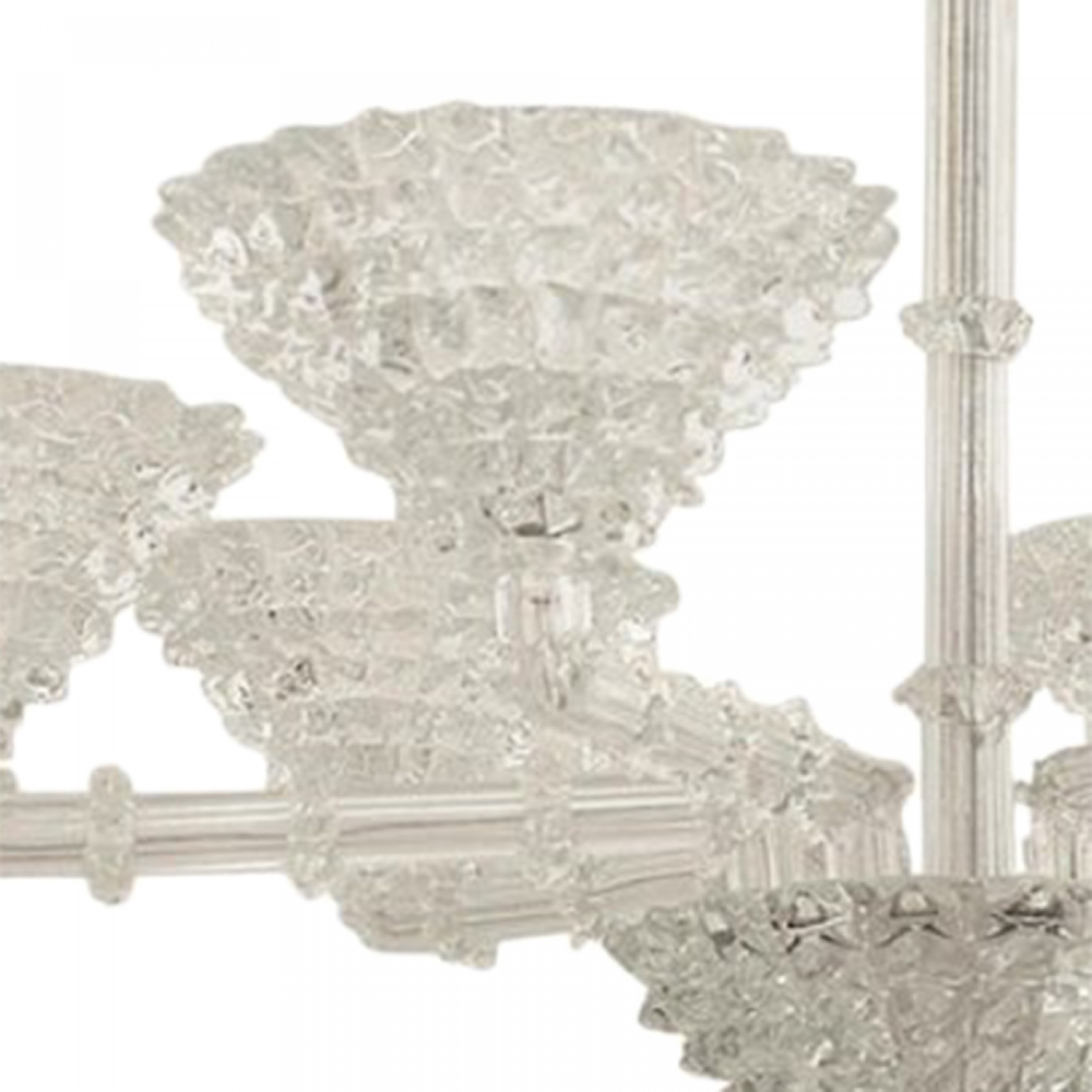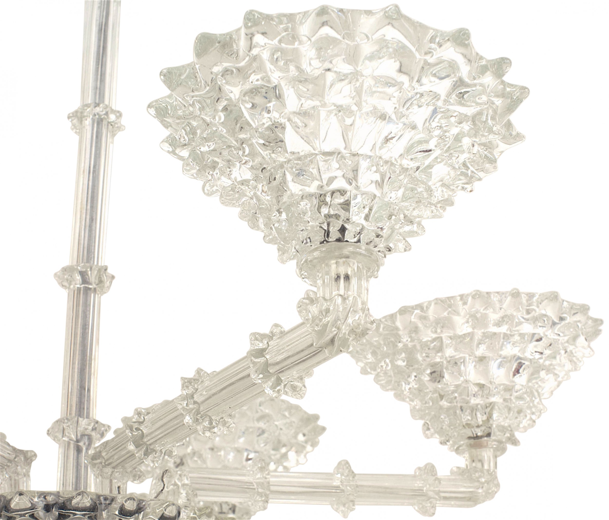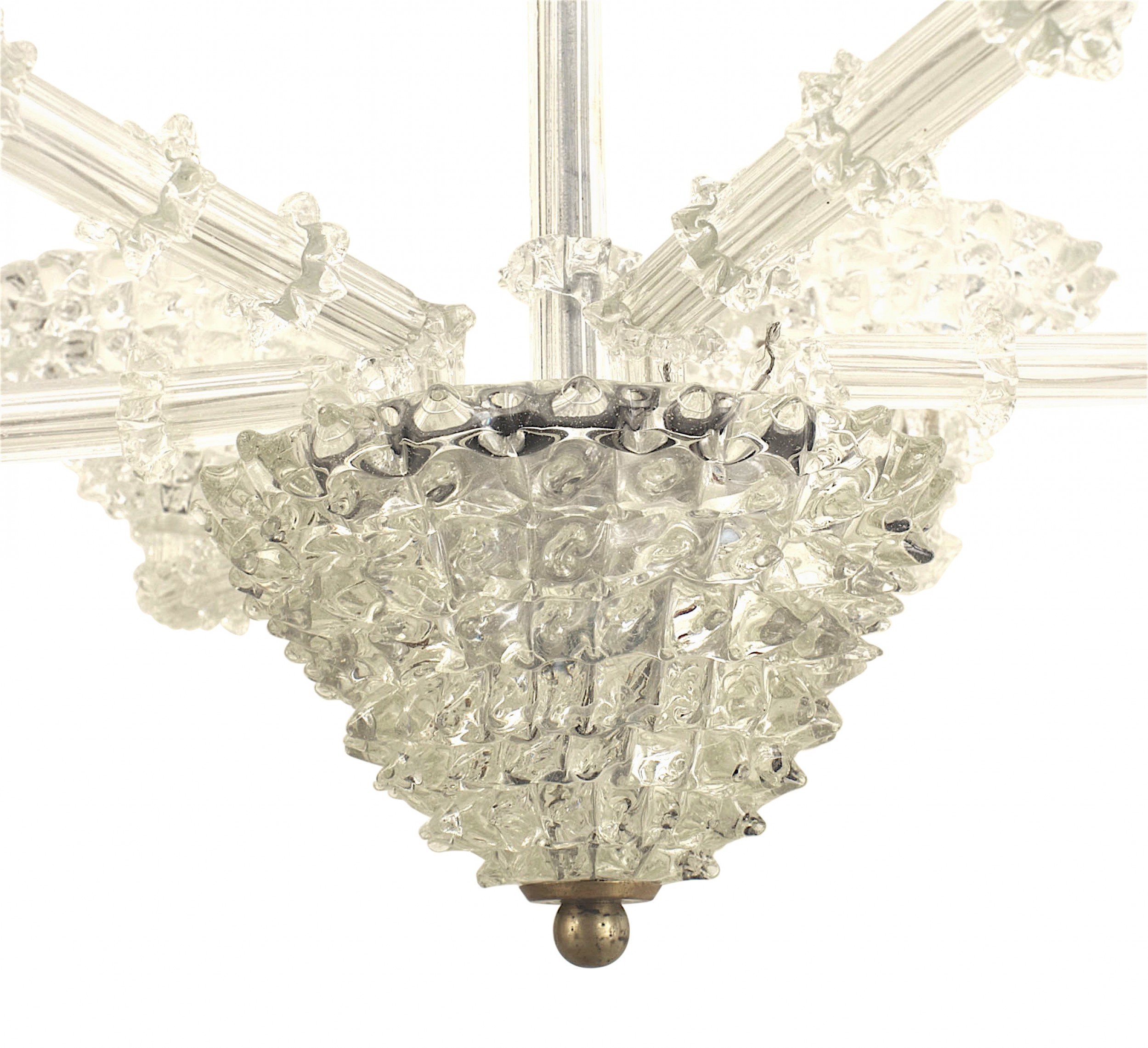 Italian Mid-Century (1940's) clear glass 6 arm chandelier with beehive form shades and bottom bowl with a brass finial bottom and a tiered center post..