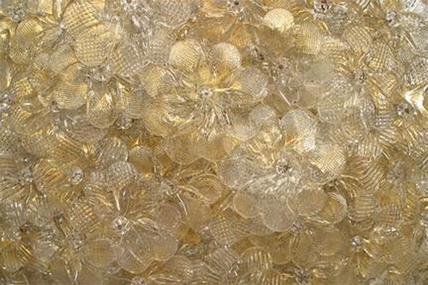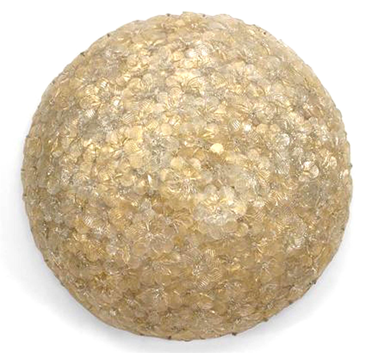 5 Italian Mid-Century-Style (1940's) Murano flush mounted dome shaped ceiling fixtures with gold dusted glass flowers attached to brass (interior) frame (PRICED EACH).