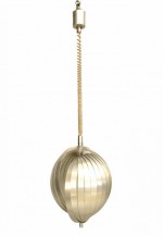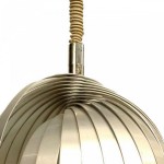 Italian 1950s lantern with metal circular slat design suspended from a fabric stem with a cylindrical metal canopy (attributed to REGGIANI).