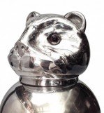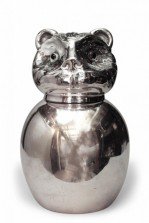 Italian Mid-Century (1940s) silver plated humidor covered jar in the form of a cat with glass eyes. (Bonwit Teller)