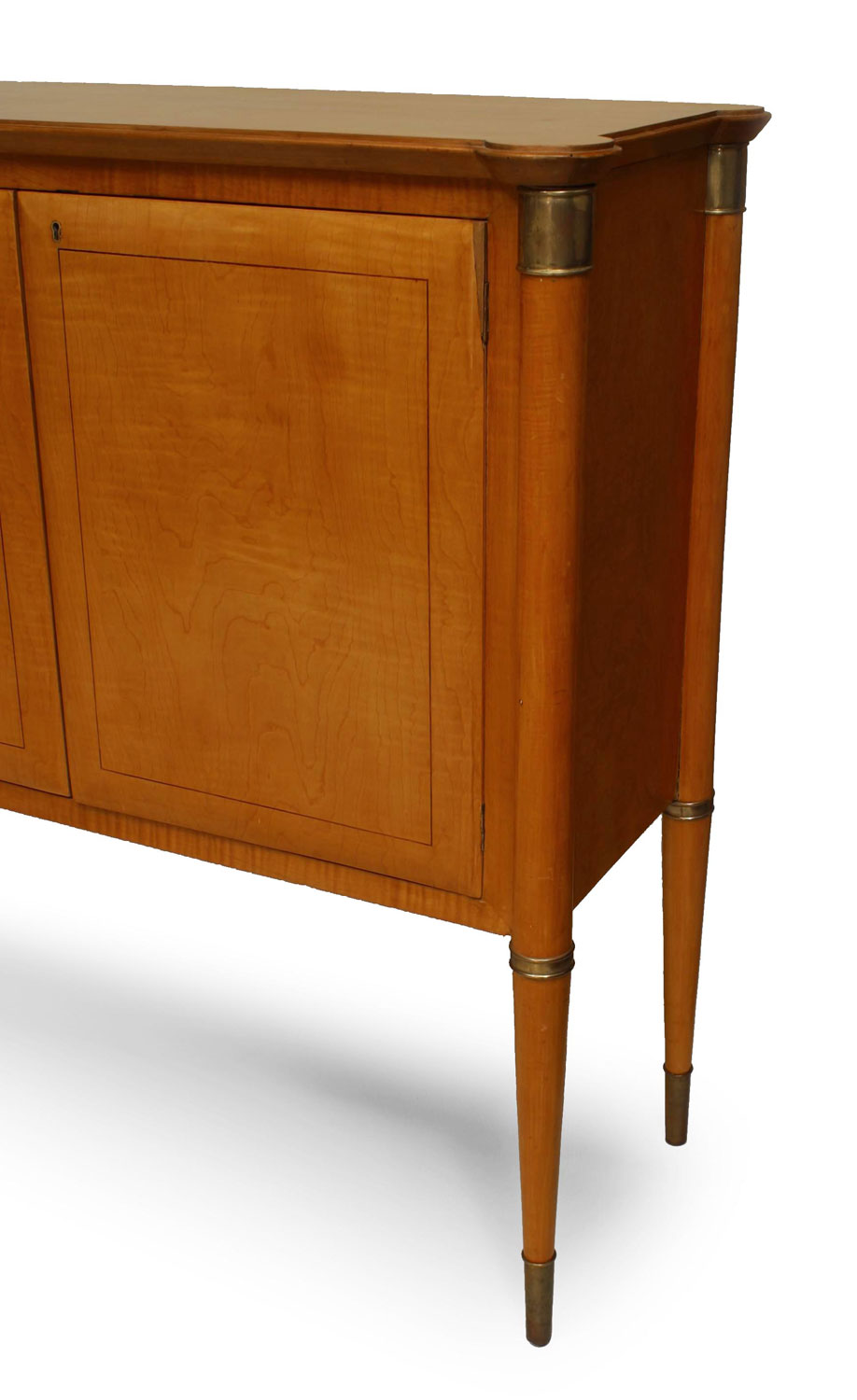 Italian Mid-Century (1930s) sycamore 4 door sideboard on raised tapered legs with brass trim (Attributed PIERLUIGI COLLI, Turin, circa 1950).