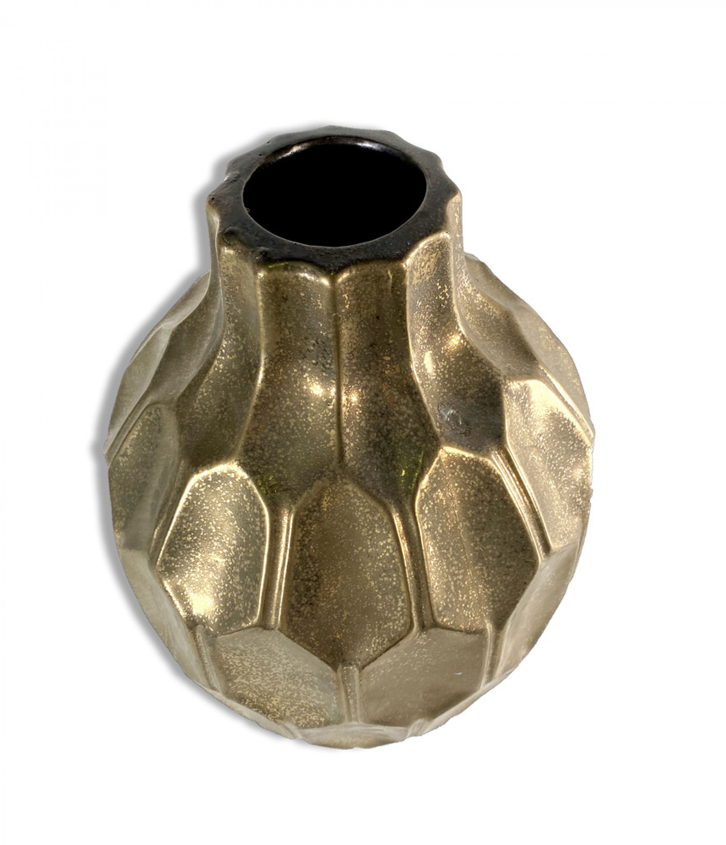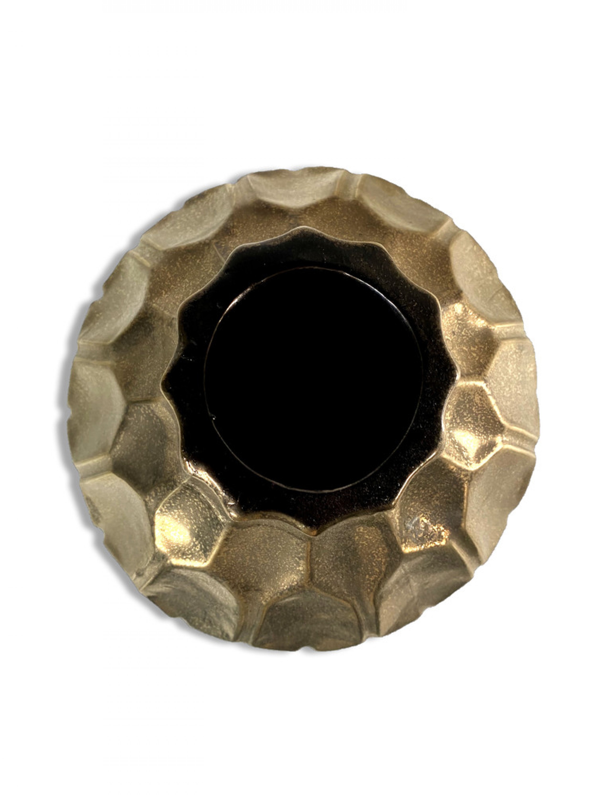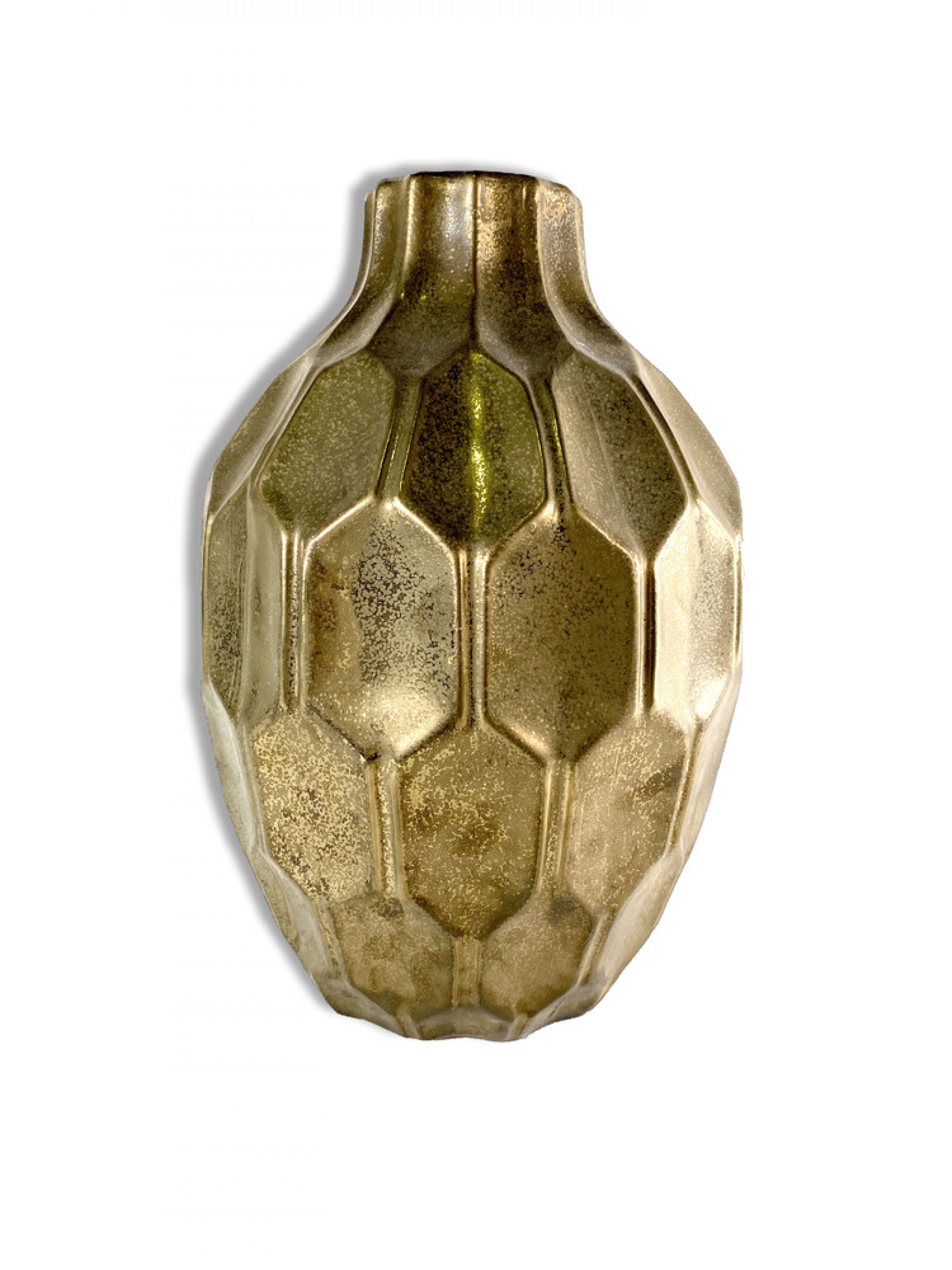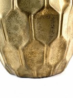 Italian Modern ceramic vessel / vase with a raised geometric pattern, finished in a metallic gold glaze. (manner of GIO PONTI) (similar 16" vase: REG4573)