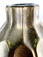 Italian Modern ceramic vessel / vase with a raised geometric pattern, finished in a metallic gold glaze. (manner of GIO PONTI) (similar 16" vase: REG4573).