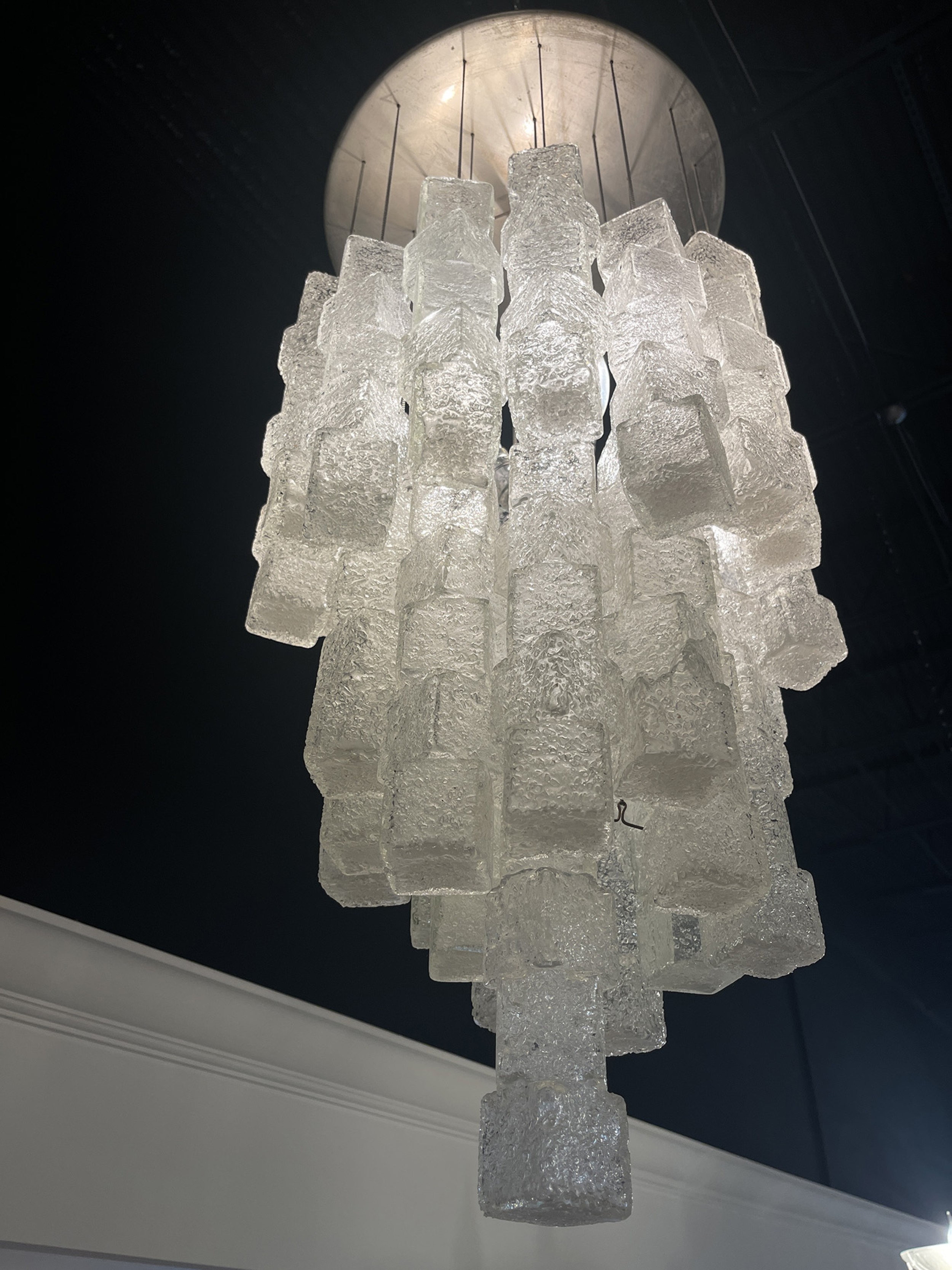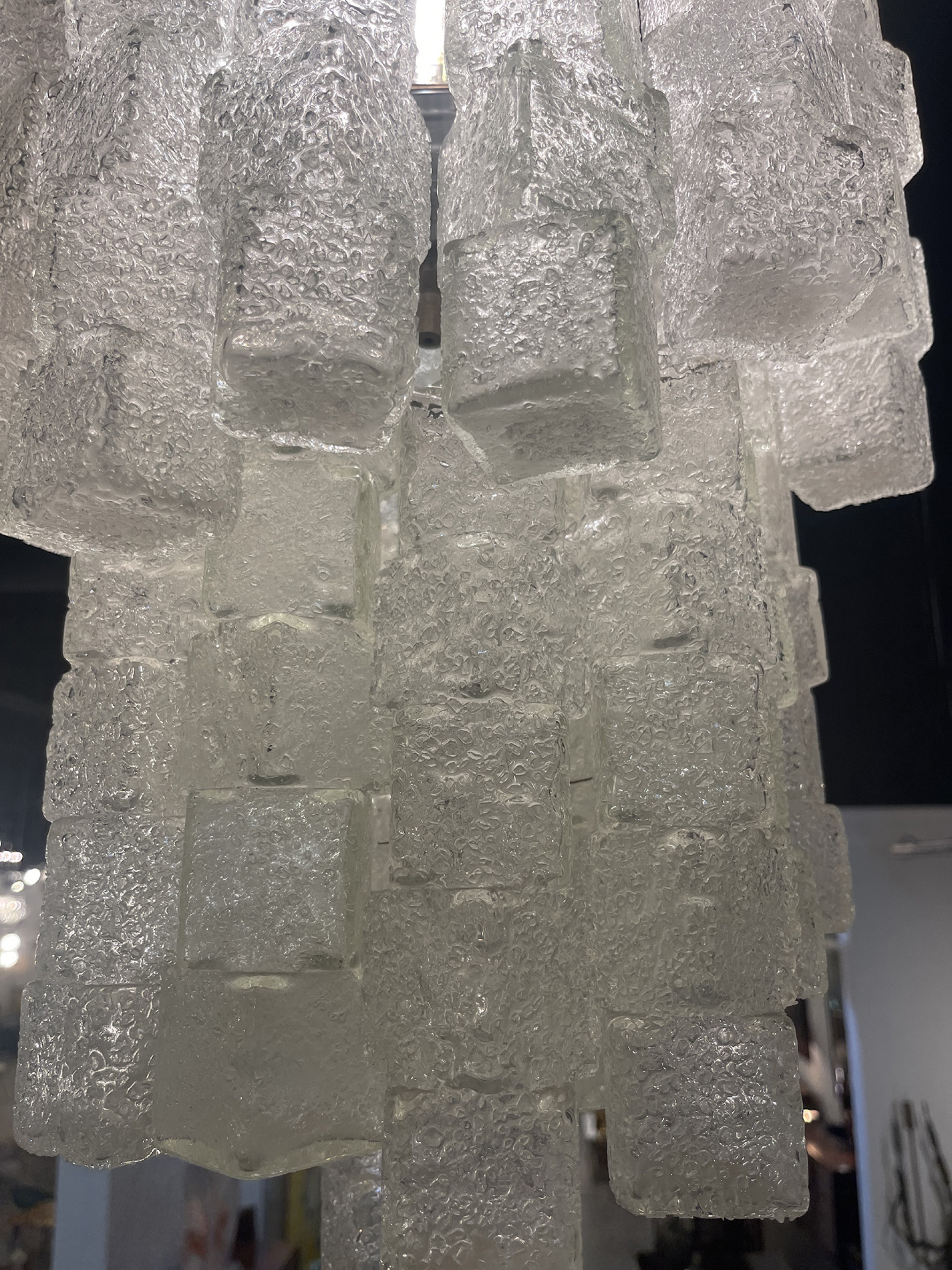 Italian Modern Hand Blown Glass Ice Cube Chandelier, Mazzega.