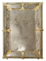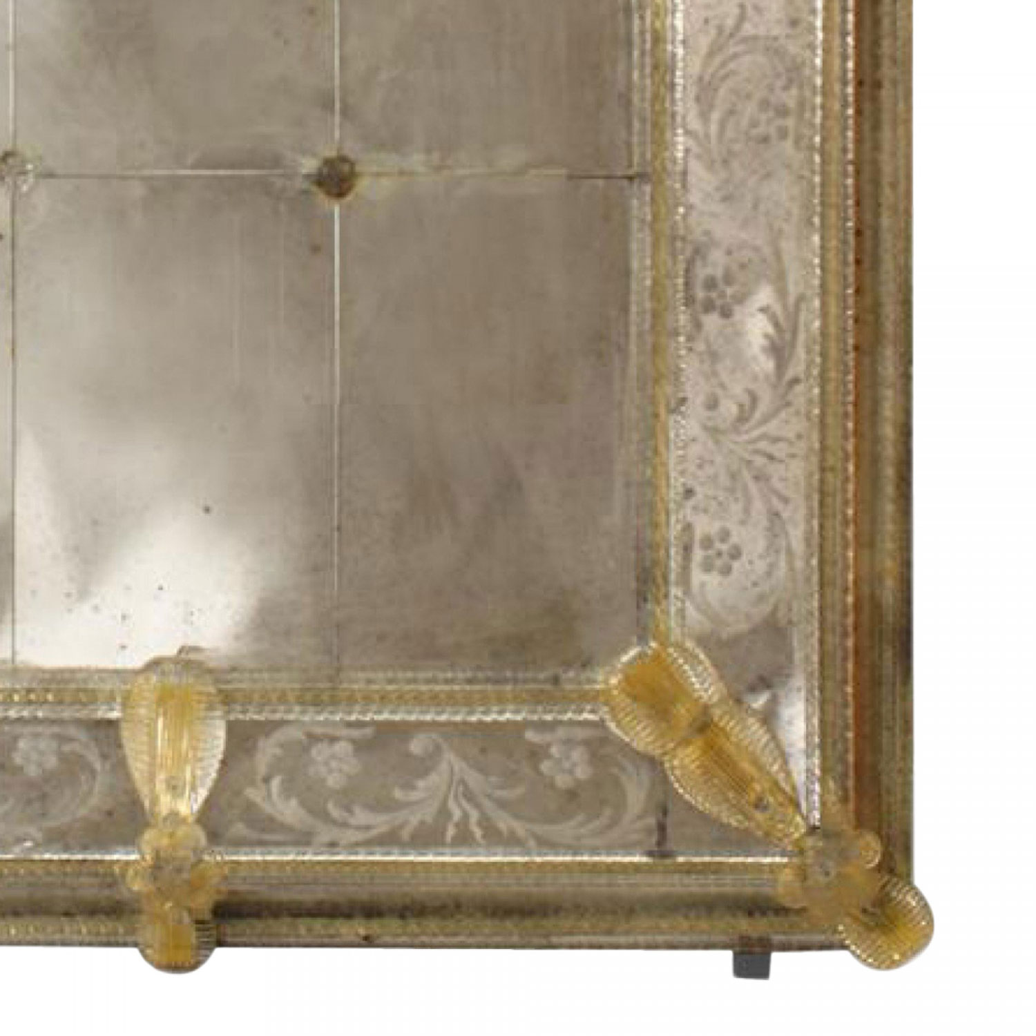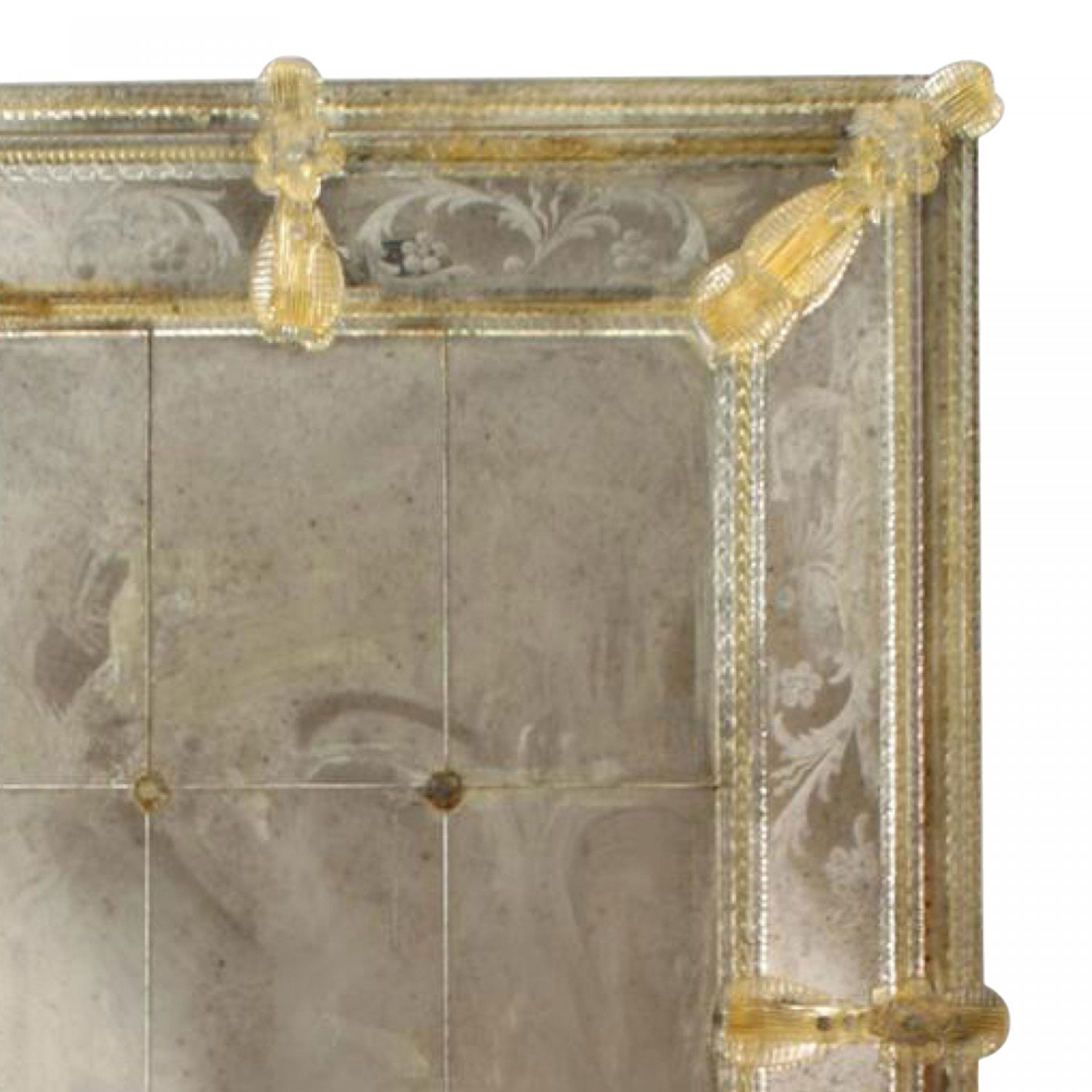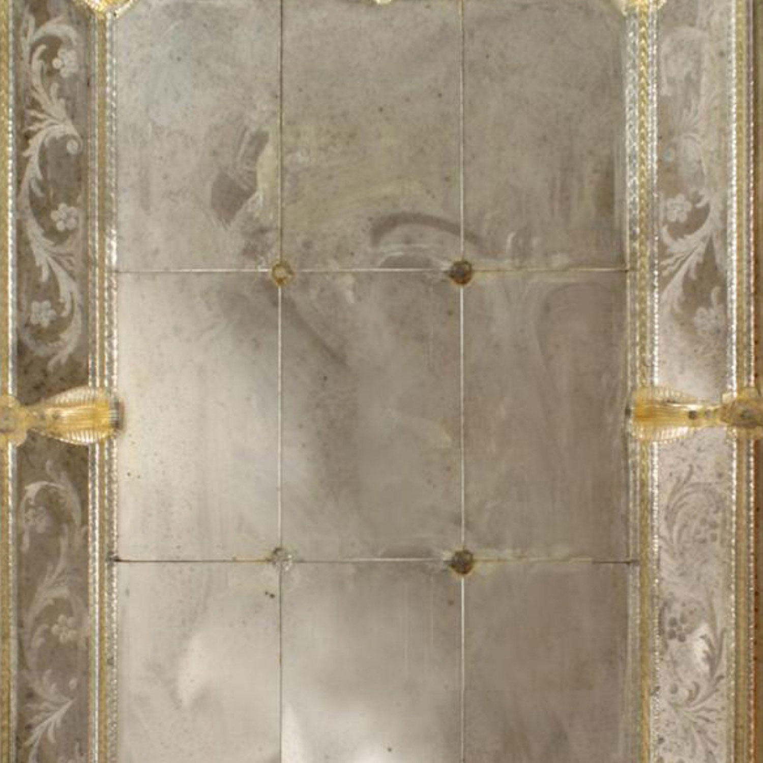 3 Italian Murano wall mirror with nine rectangular panels and etched floral and scroll design border with applied gold glass flowers and spindle trim (PRICED EACH)