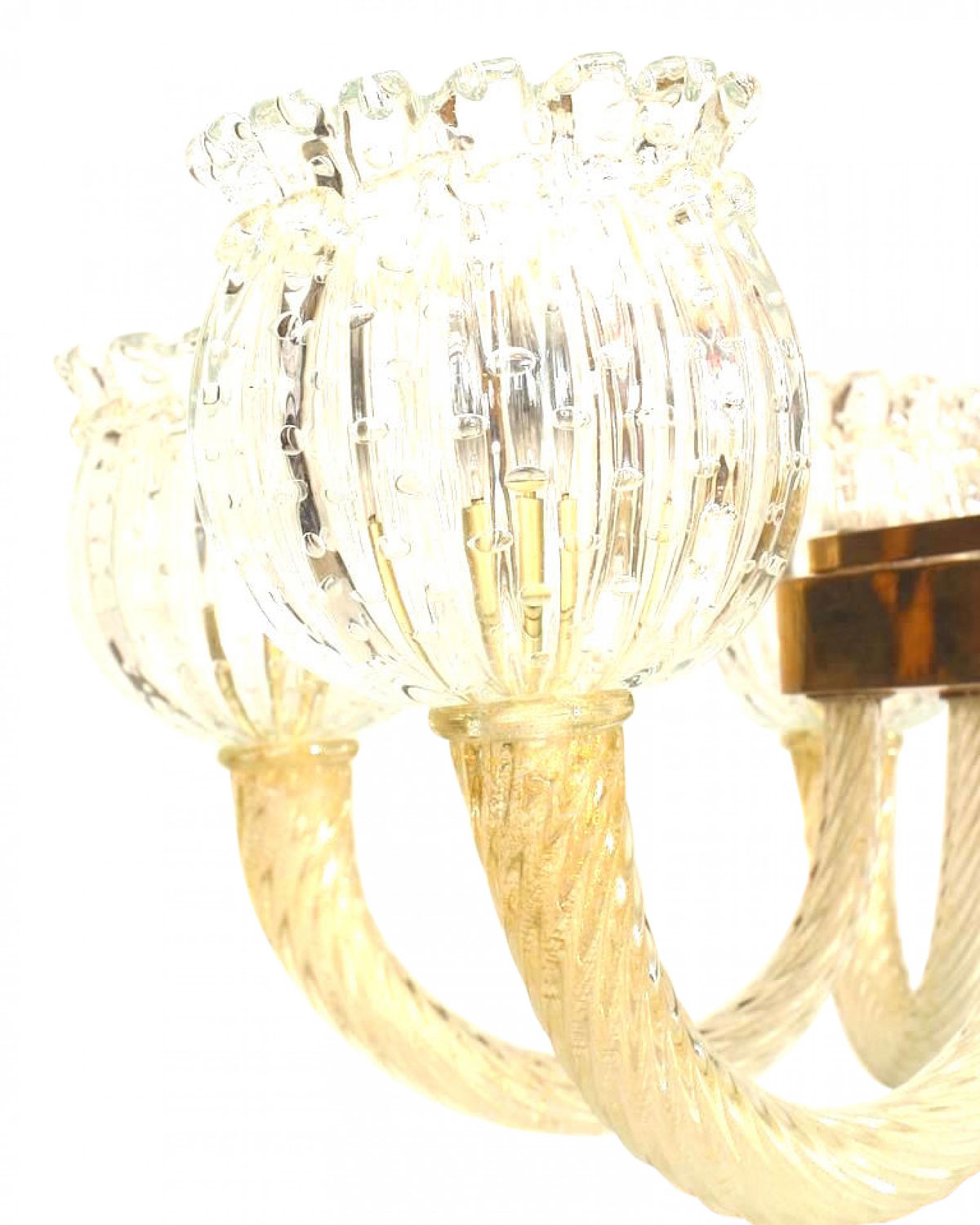 Barovier et Toso Italian Murano Gold Dusted Bubble Glass Chandelier