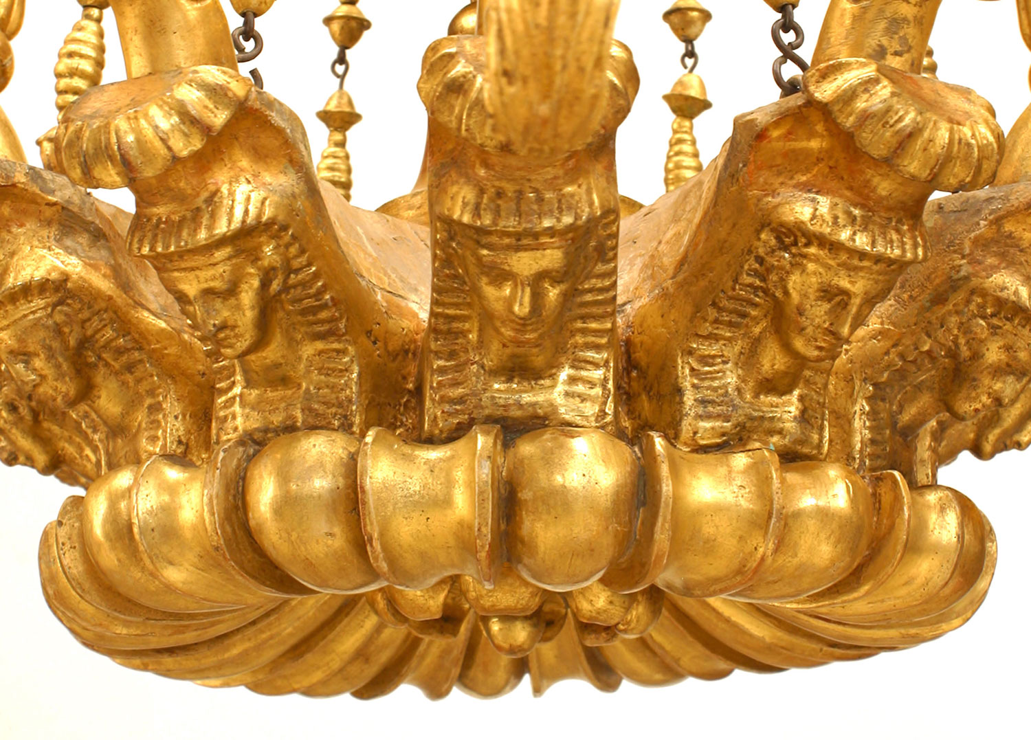 Italian Neoclassic Egyptian Motif Gilt Wood Chandelier