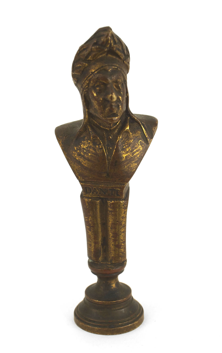 Italian Neo-classic (19/20th Century) bronze bust of Dante as a wax stamp seal.