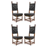 Set of 4 Italian Renaissance Black Leather Side Chairs