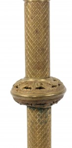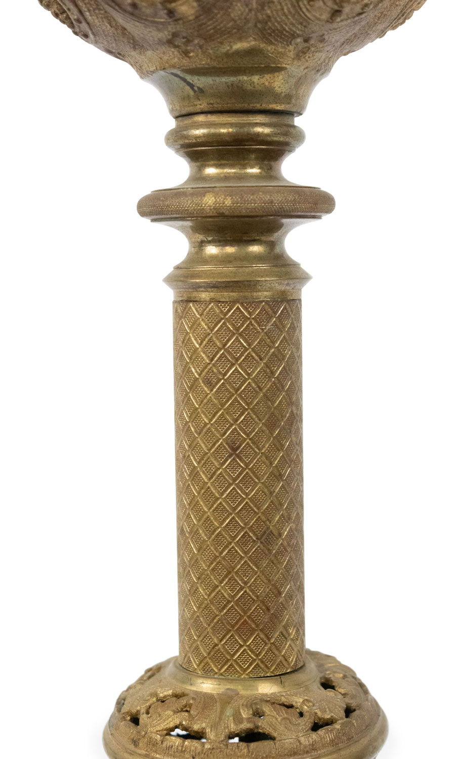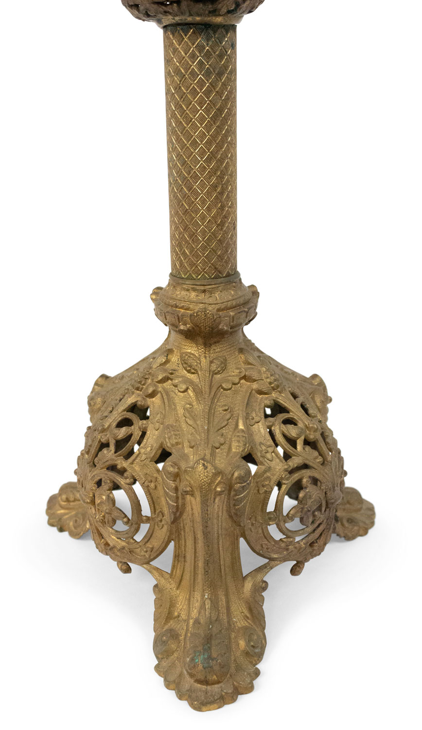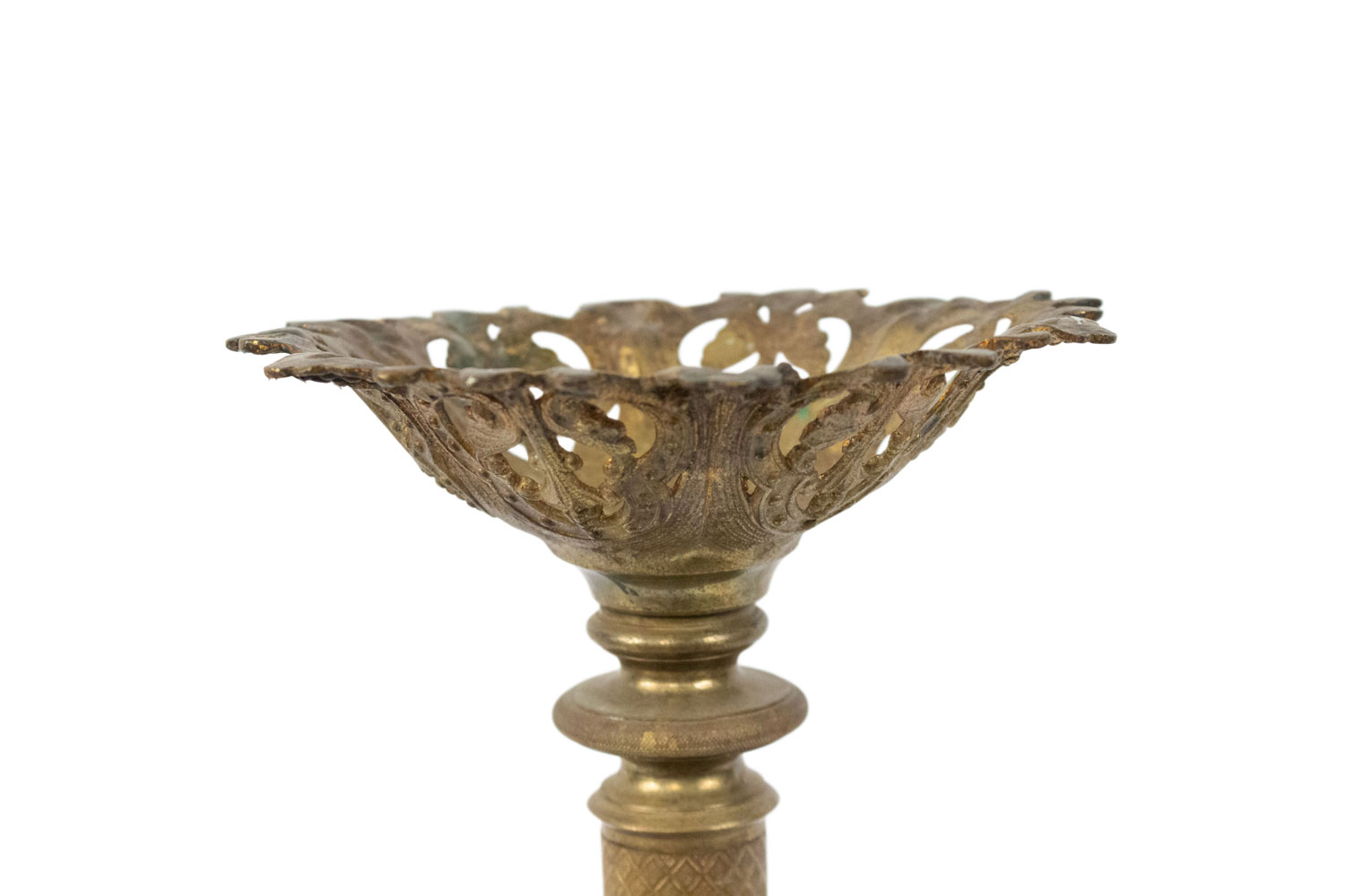 PAIR of Italian Renaissance-style (19th Century) round bronze altar sticks with filigree top and base (PRICED AS PAIR)