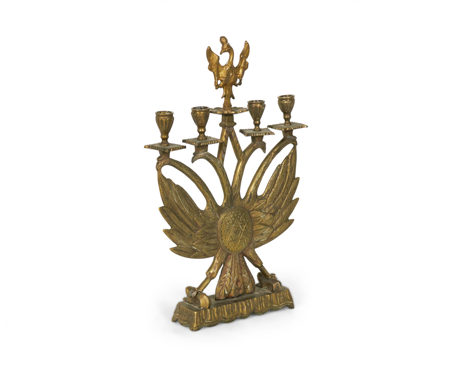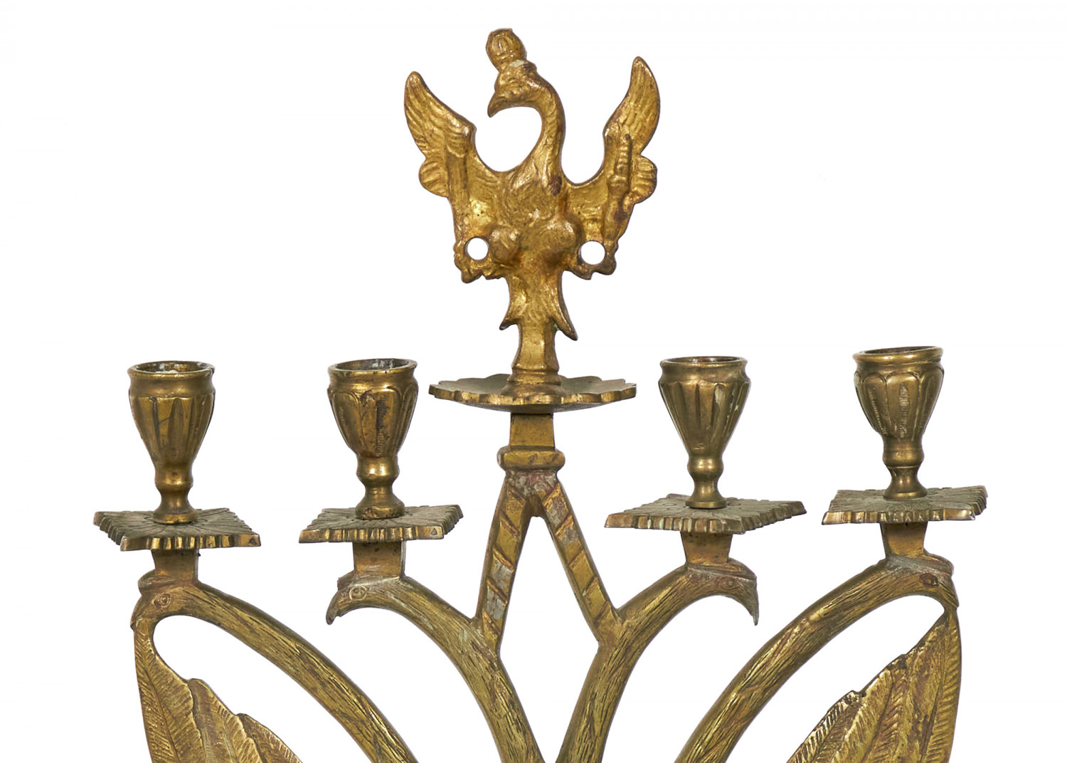 PAIR of Italian Renaissance-style (19th Century) Judaica eagle head design brass candelabras with bird finials (PRICED AS PAIR).