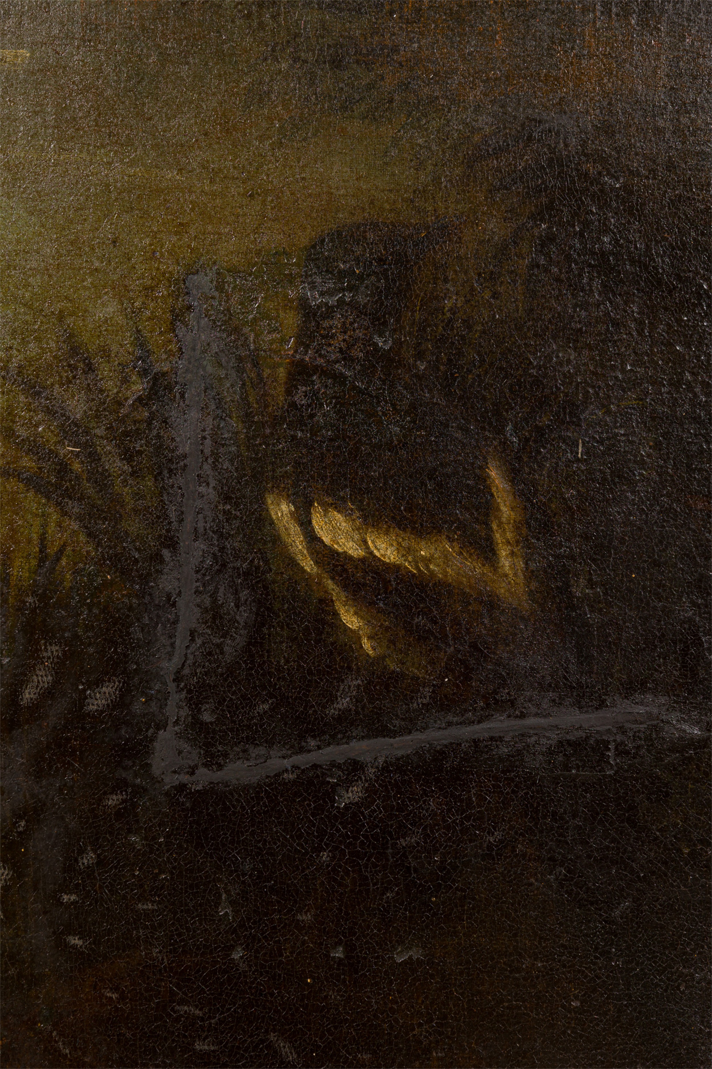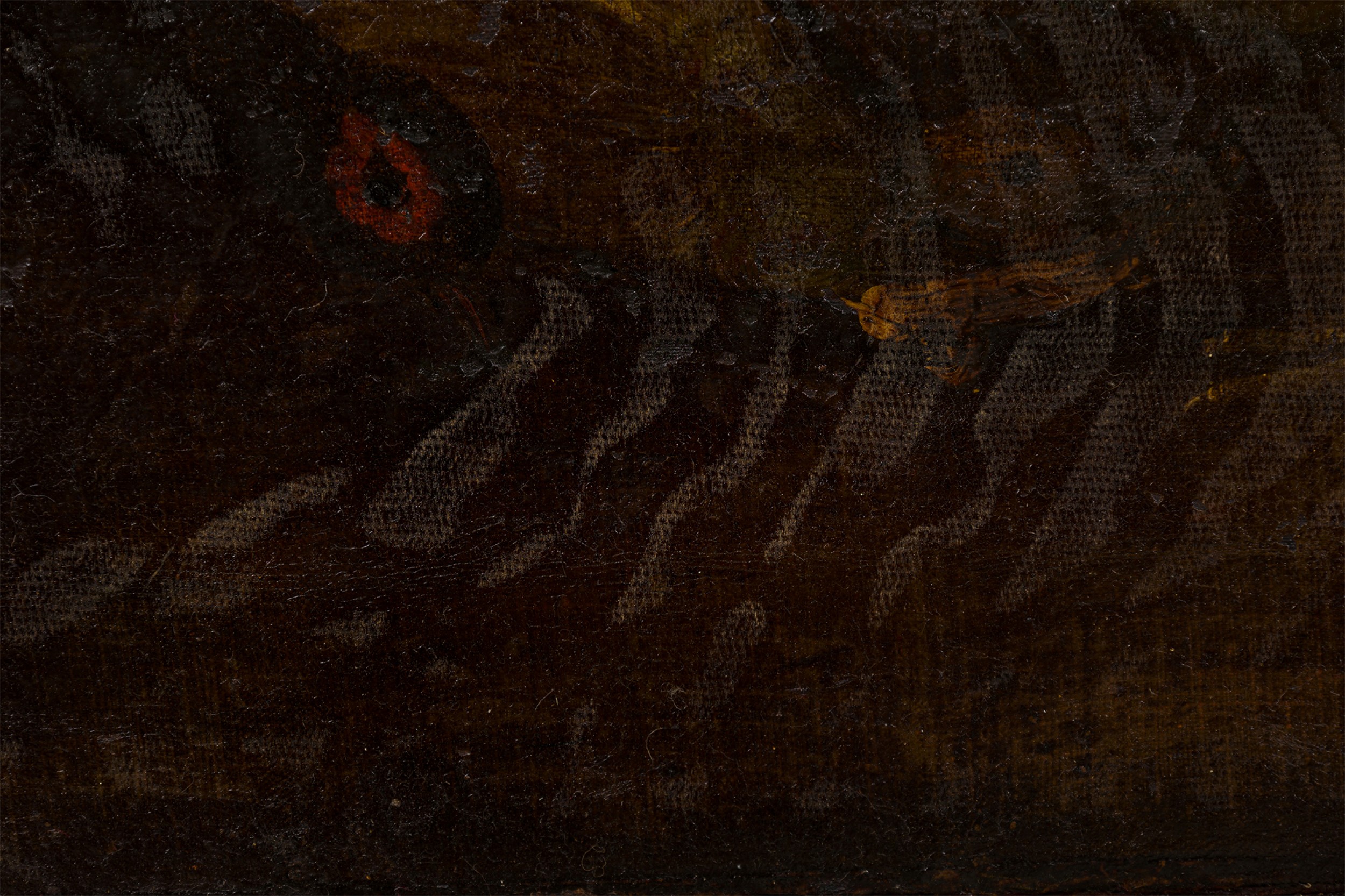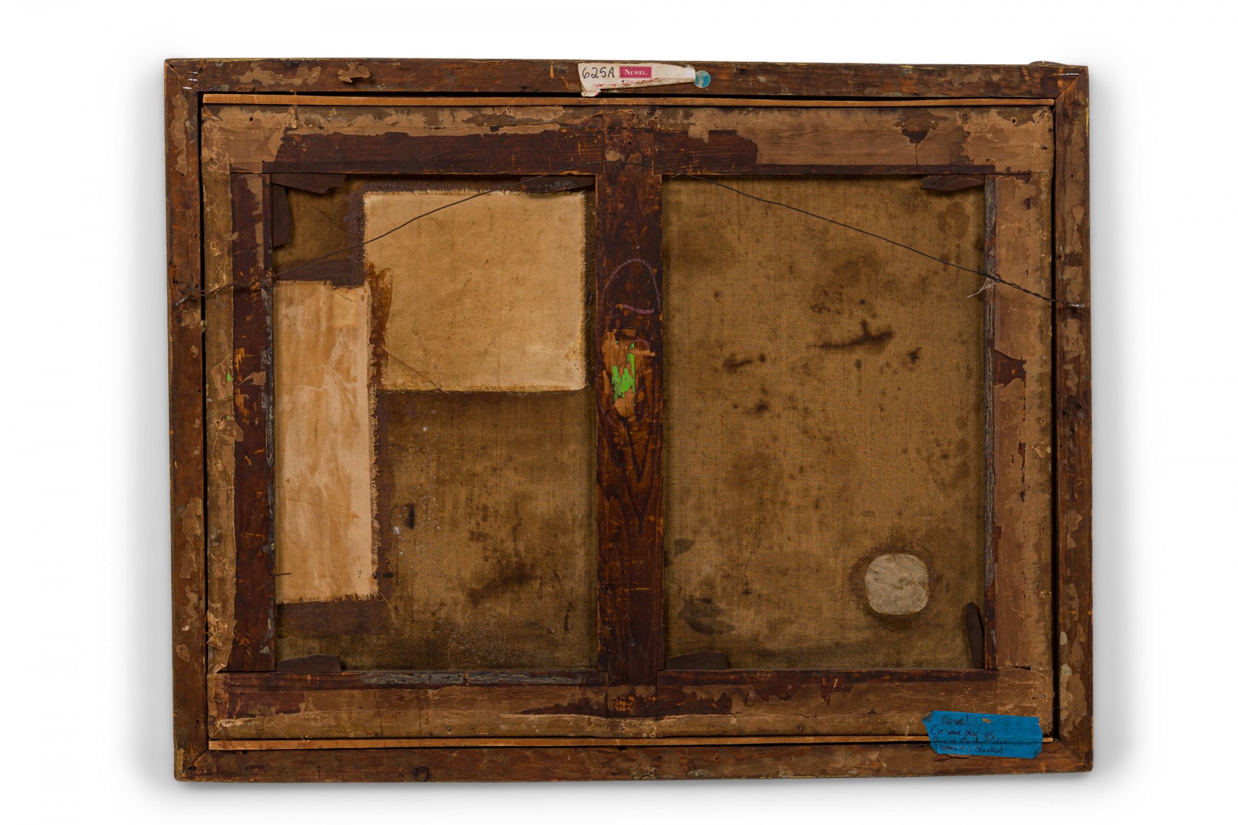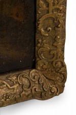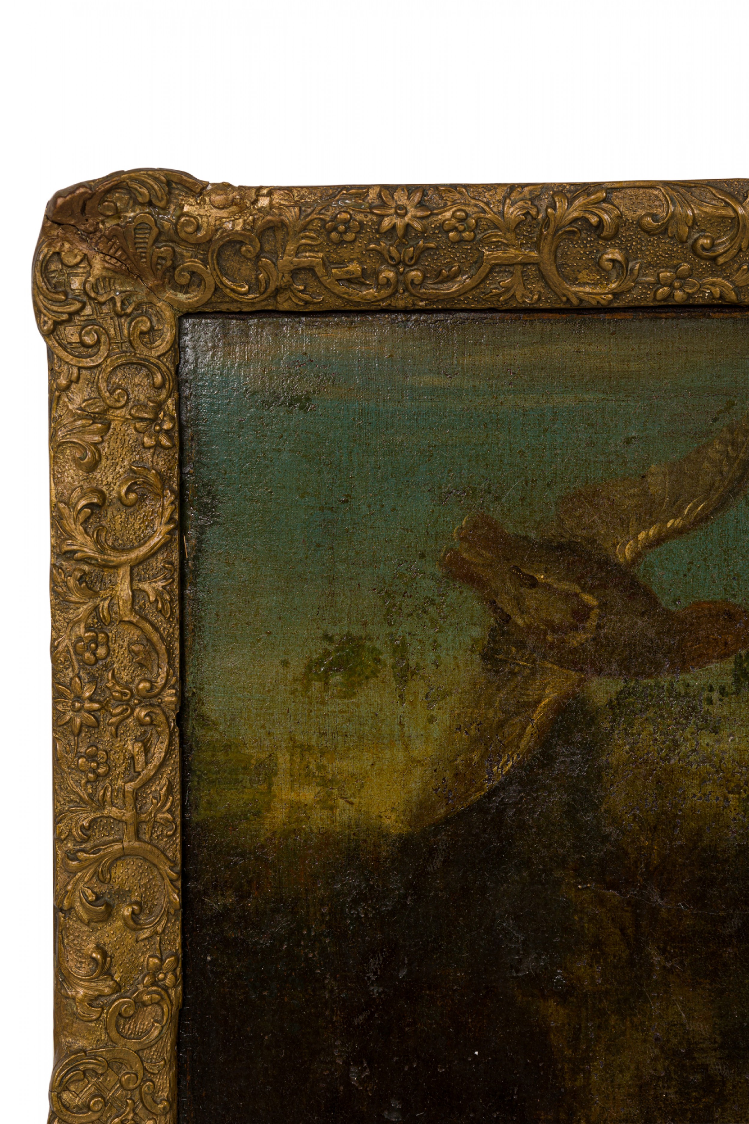 Style: Italian Materials & Techniques: Canvas, carved, painted, wood Category: Cleared Art Condition: Slightly visible L-shaped tear repair in canvas, some losses to giltwood frame. Good; Minor losses