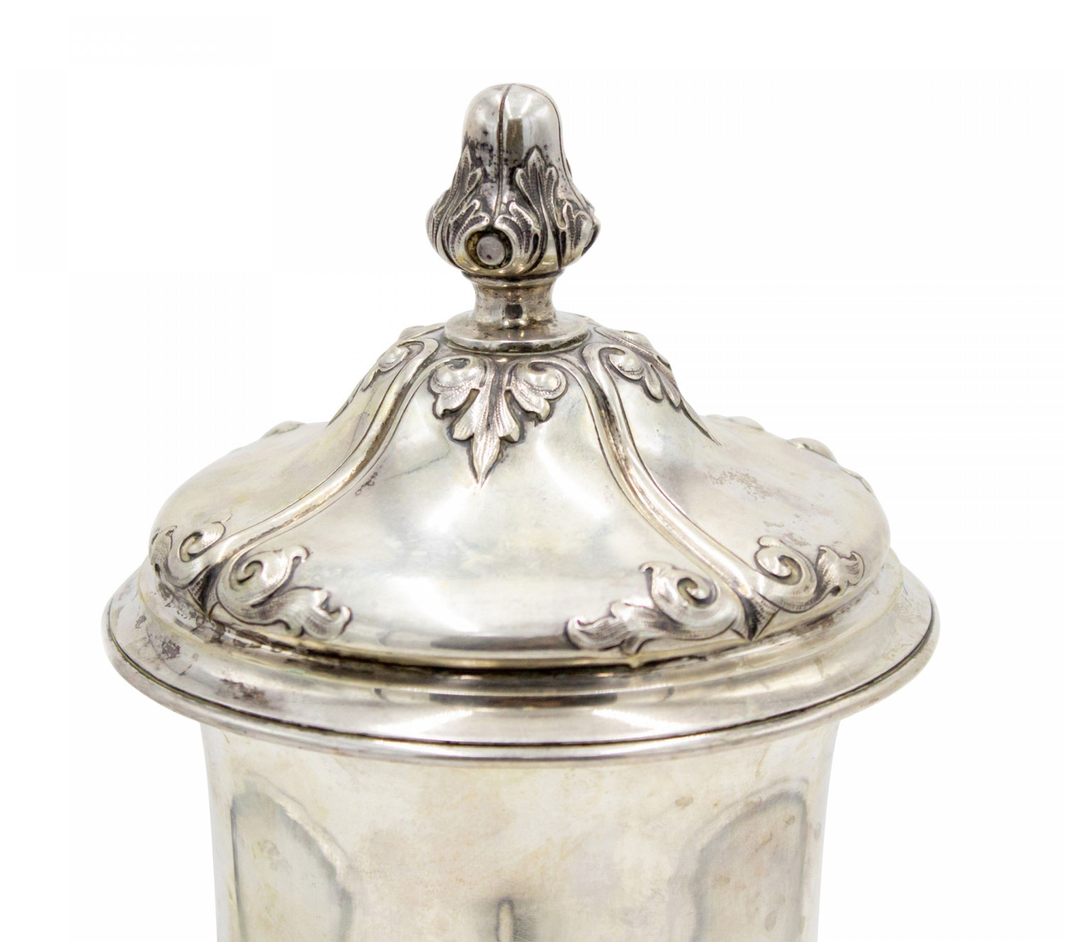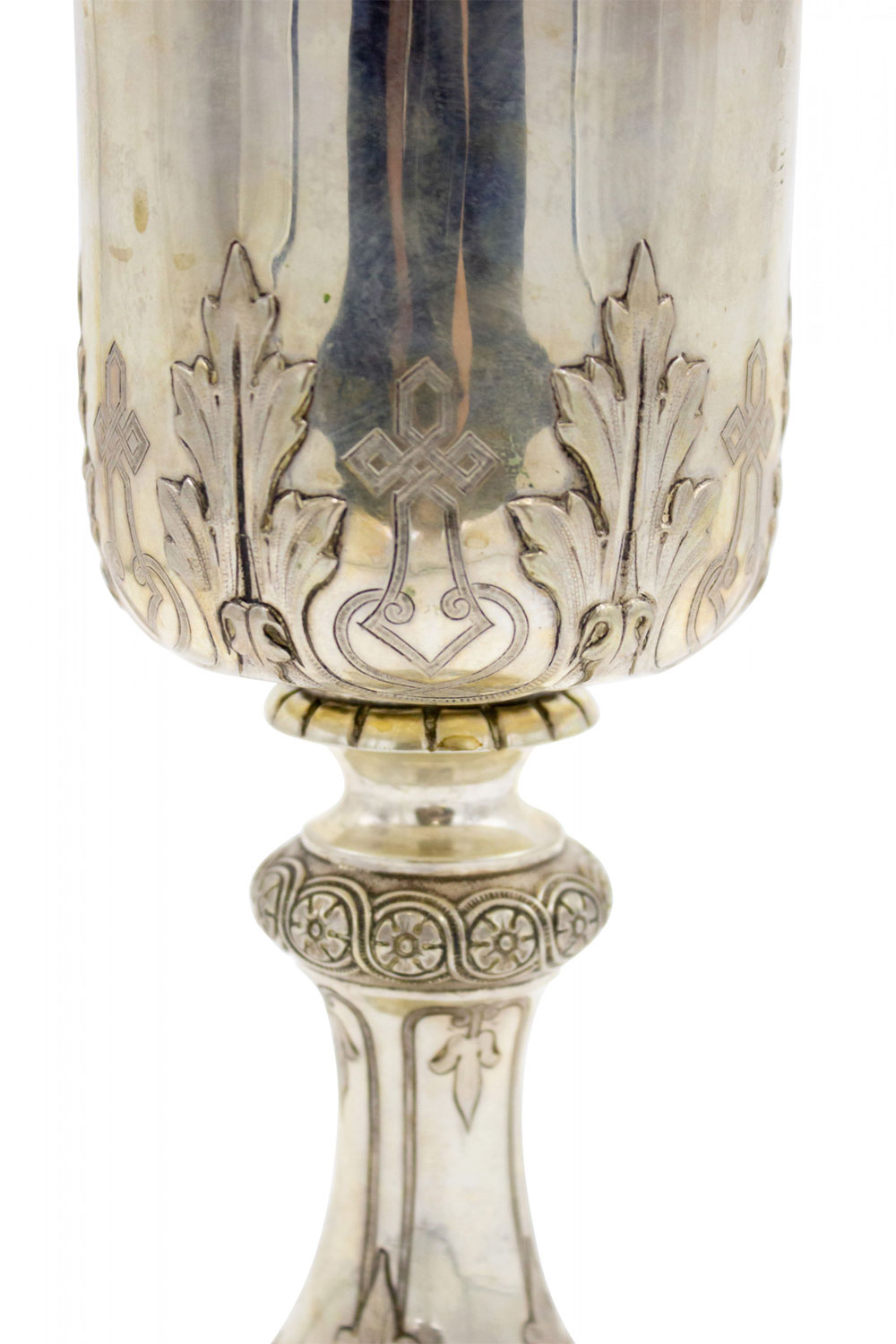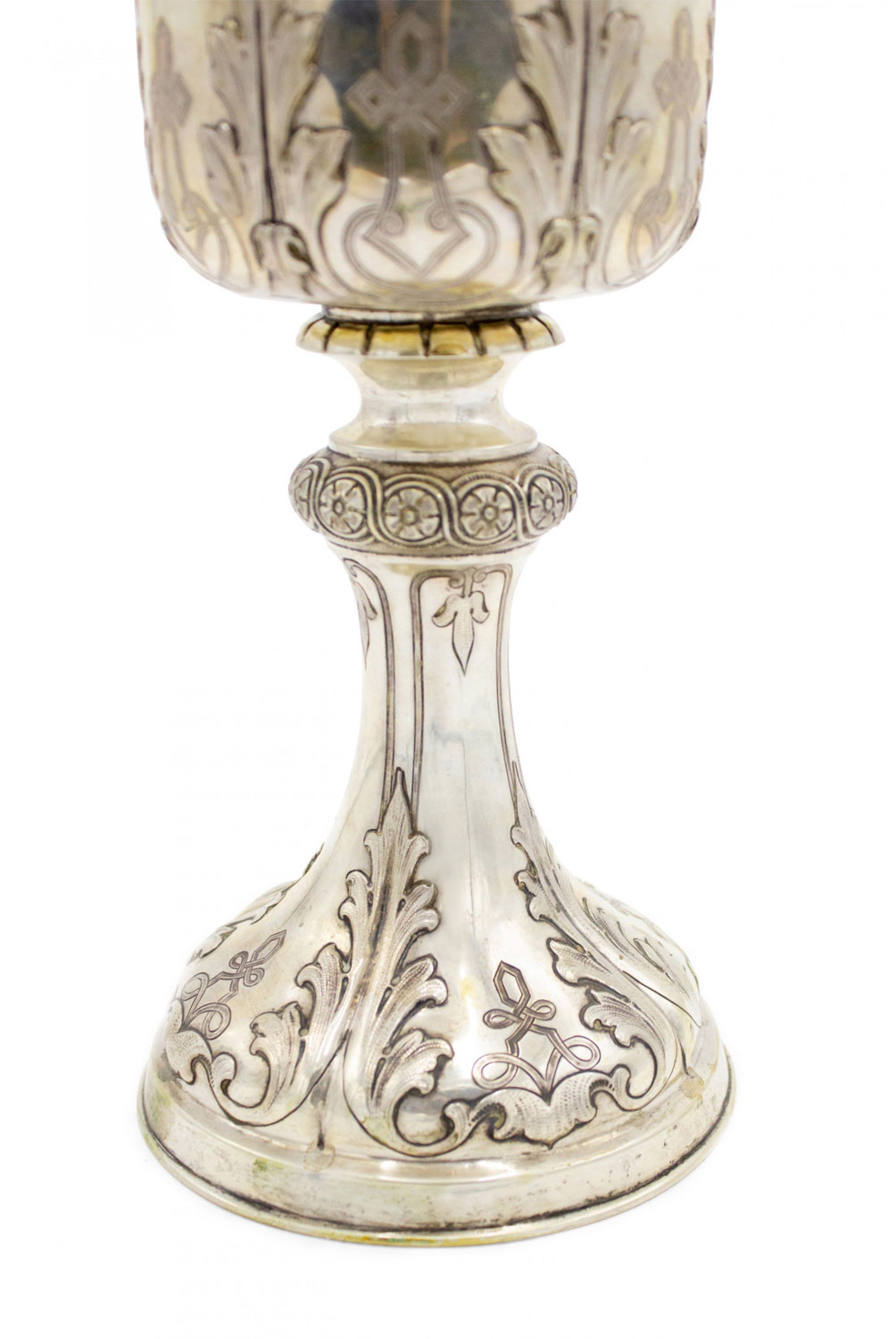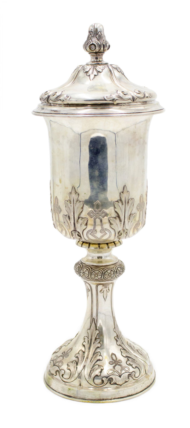 Italian Renaissance-style (19th Century) silver chalice with cover and floral design.