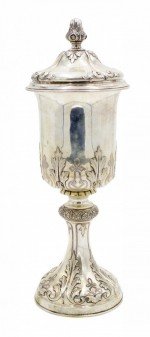Italian Renaissance-style (19th Century) silver chalice with cover and floral design..