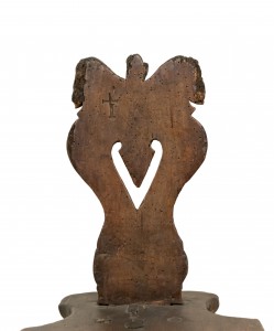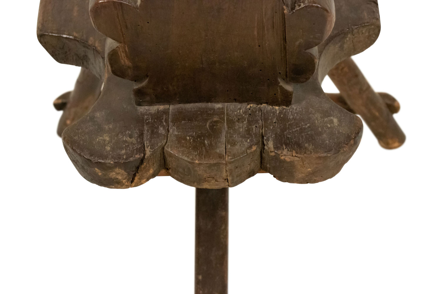 4 Similar Italian Renaissance style (17th Cent) walnut (sgabelli with narrow shaped back having a "V" cut (2-4 legged; 2-3 legged) (PRICED EACH)(one with incised cross).