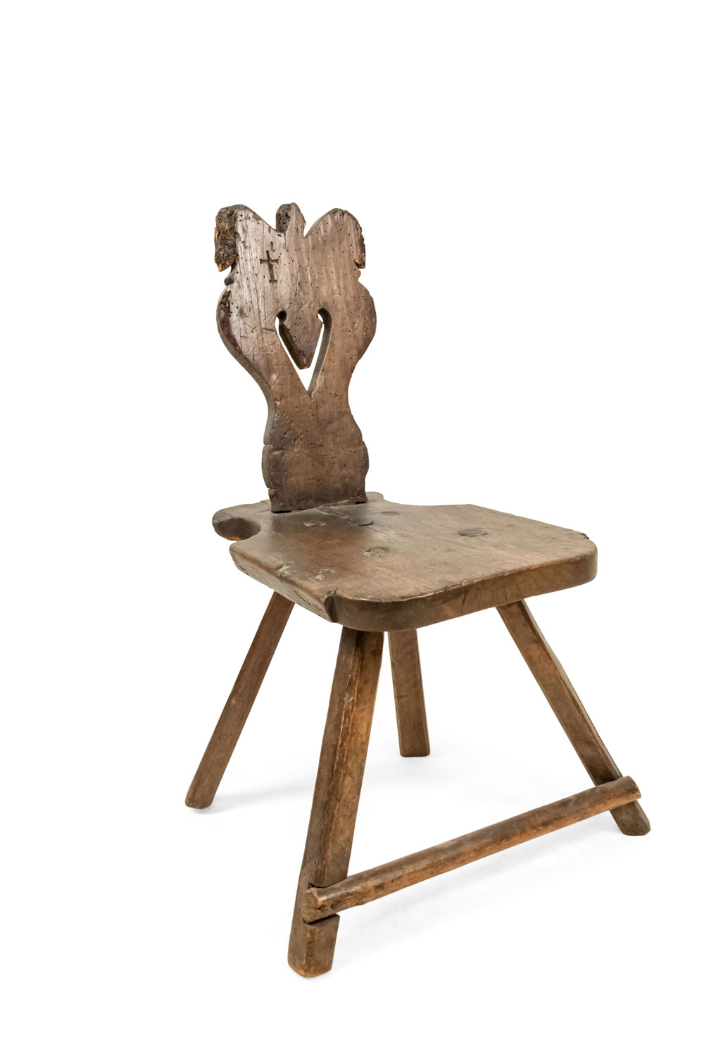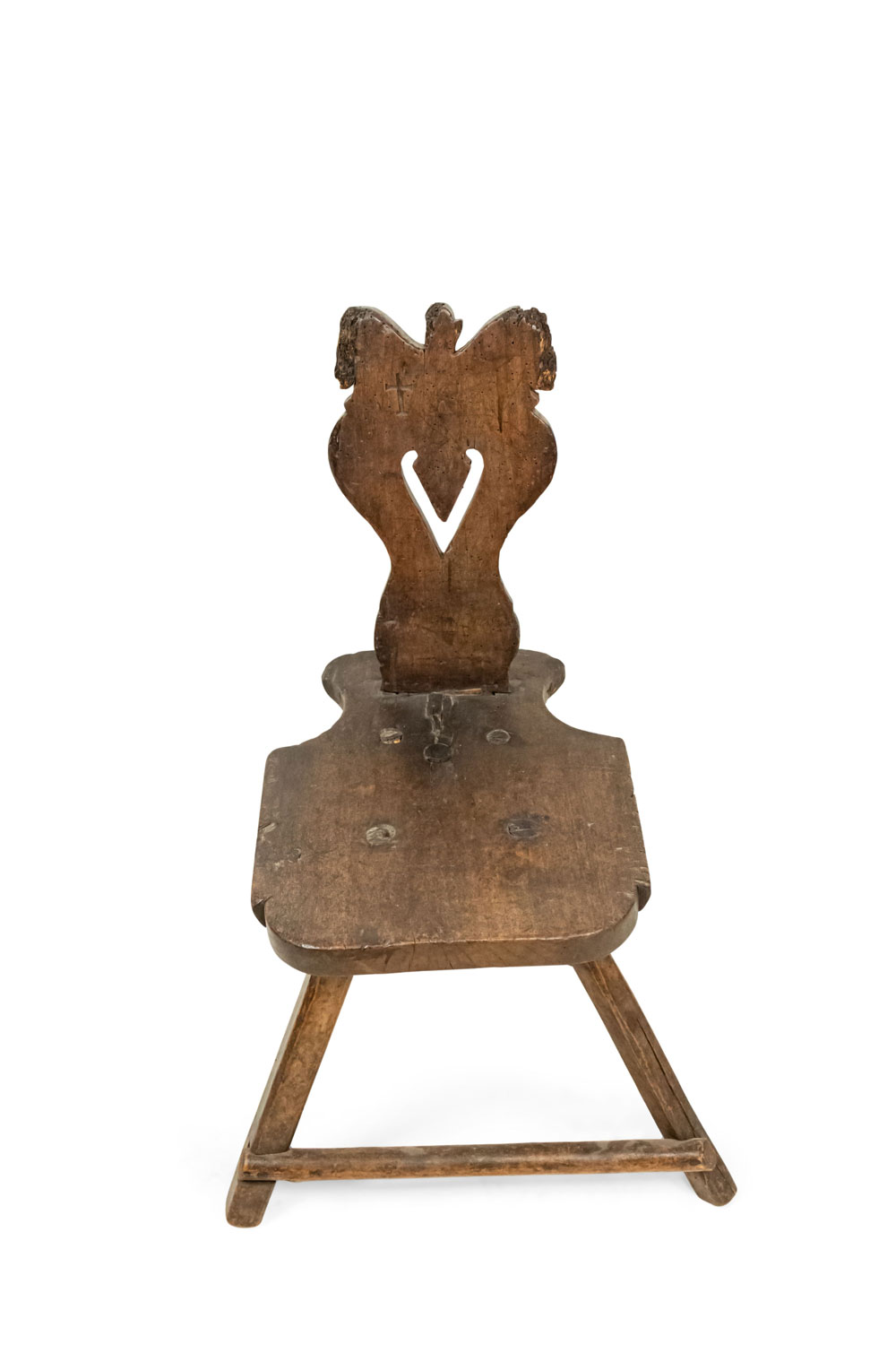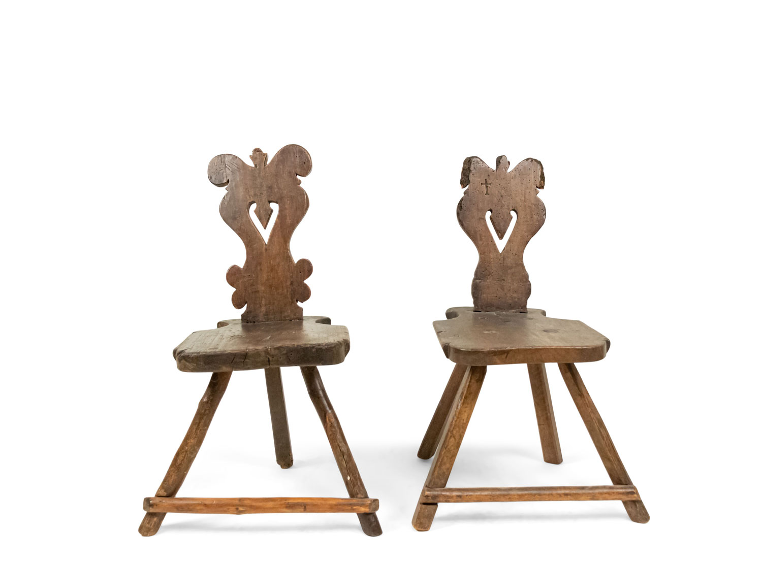 4 Similar Italian Renaissance style (17th Cent) walnut (sgabelli with narrow shaped back having a "V" cut (2-4 legged; 2-3 legged) (PRICED EACH)(one with incised cross)