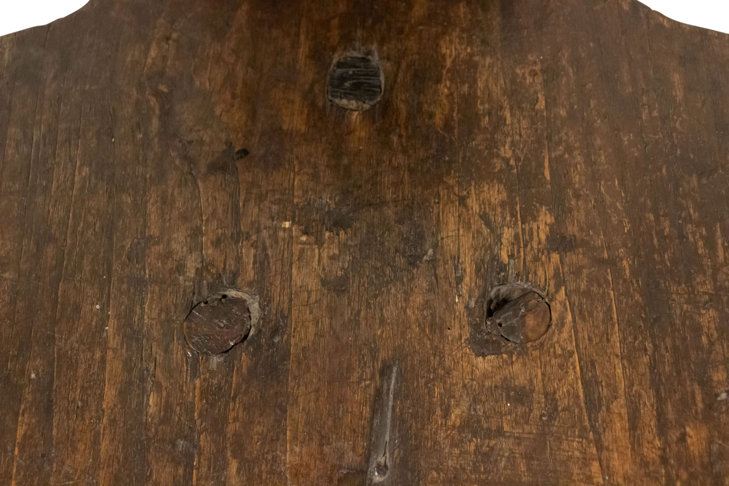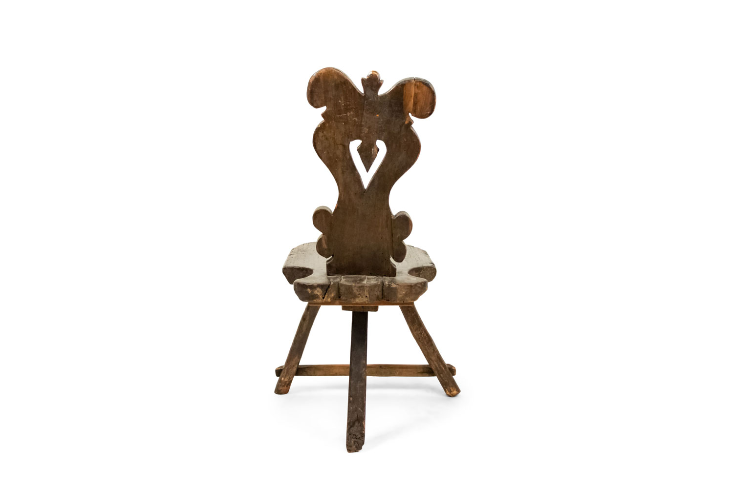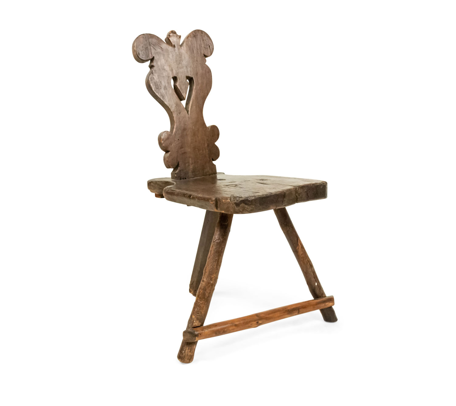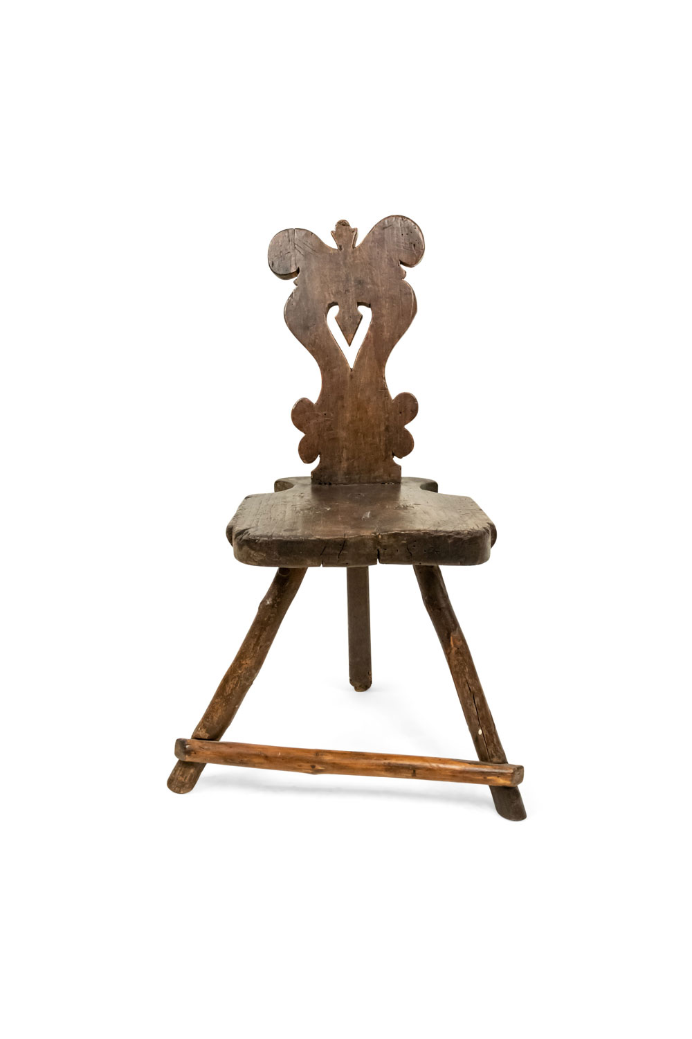 4 Similar Italian Renaissance style (17th Cent) walnut (sgabelli with narrow shaped back having a "V" cut (2-4 legged; 2-3 legged) (PRICED EACH)(one with incised cross)