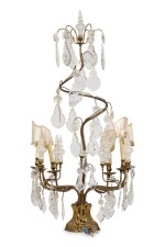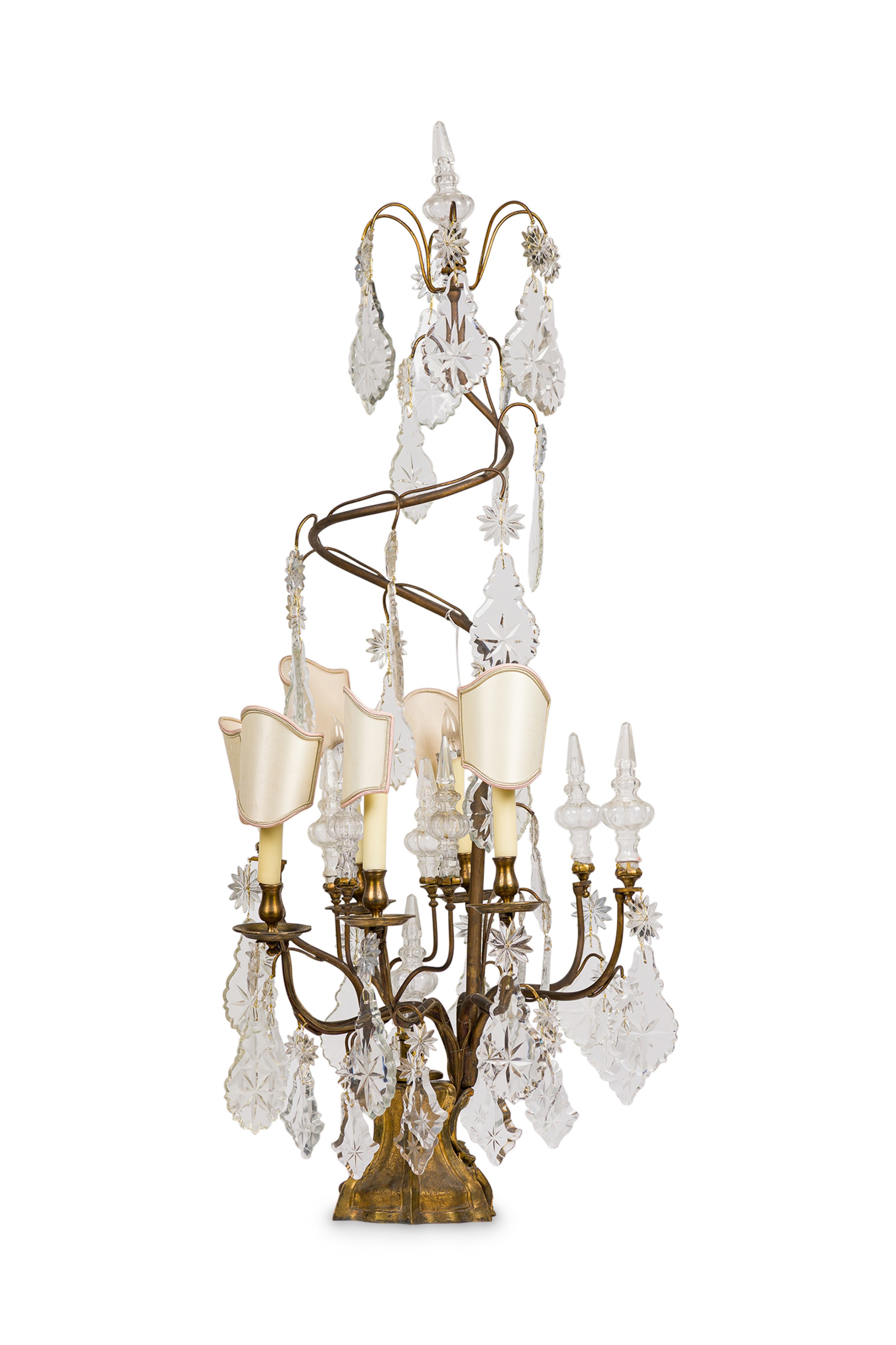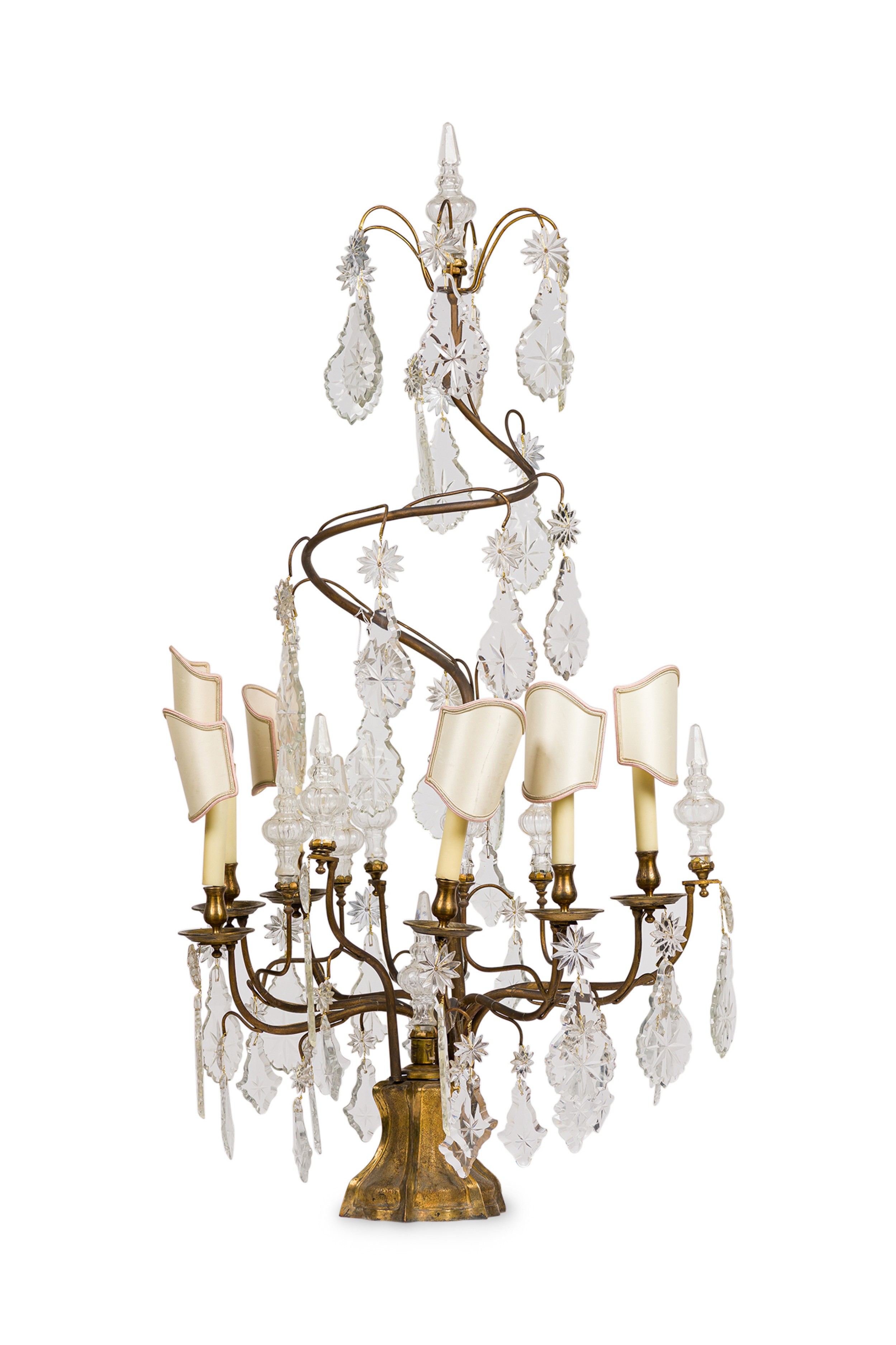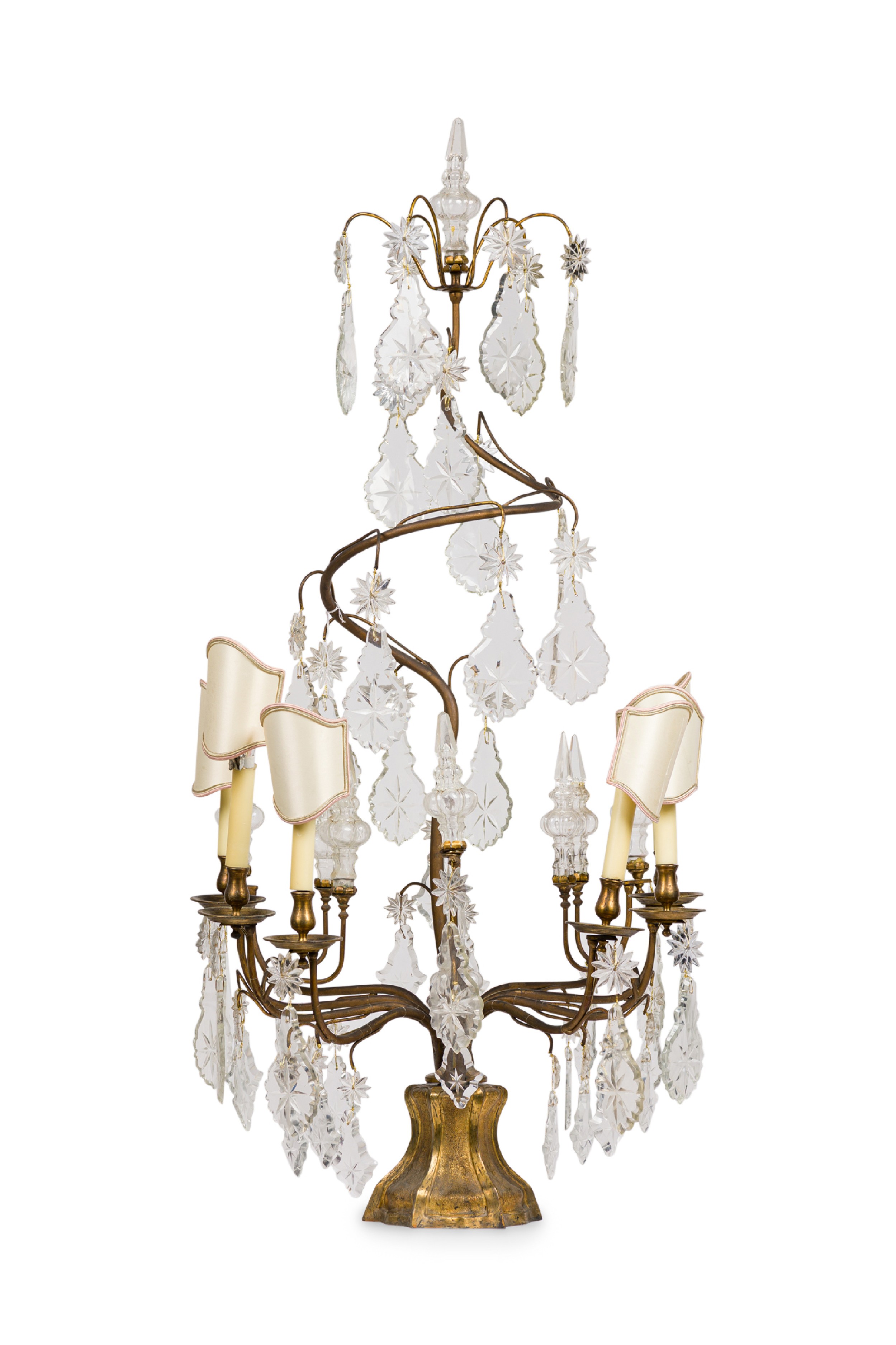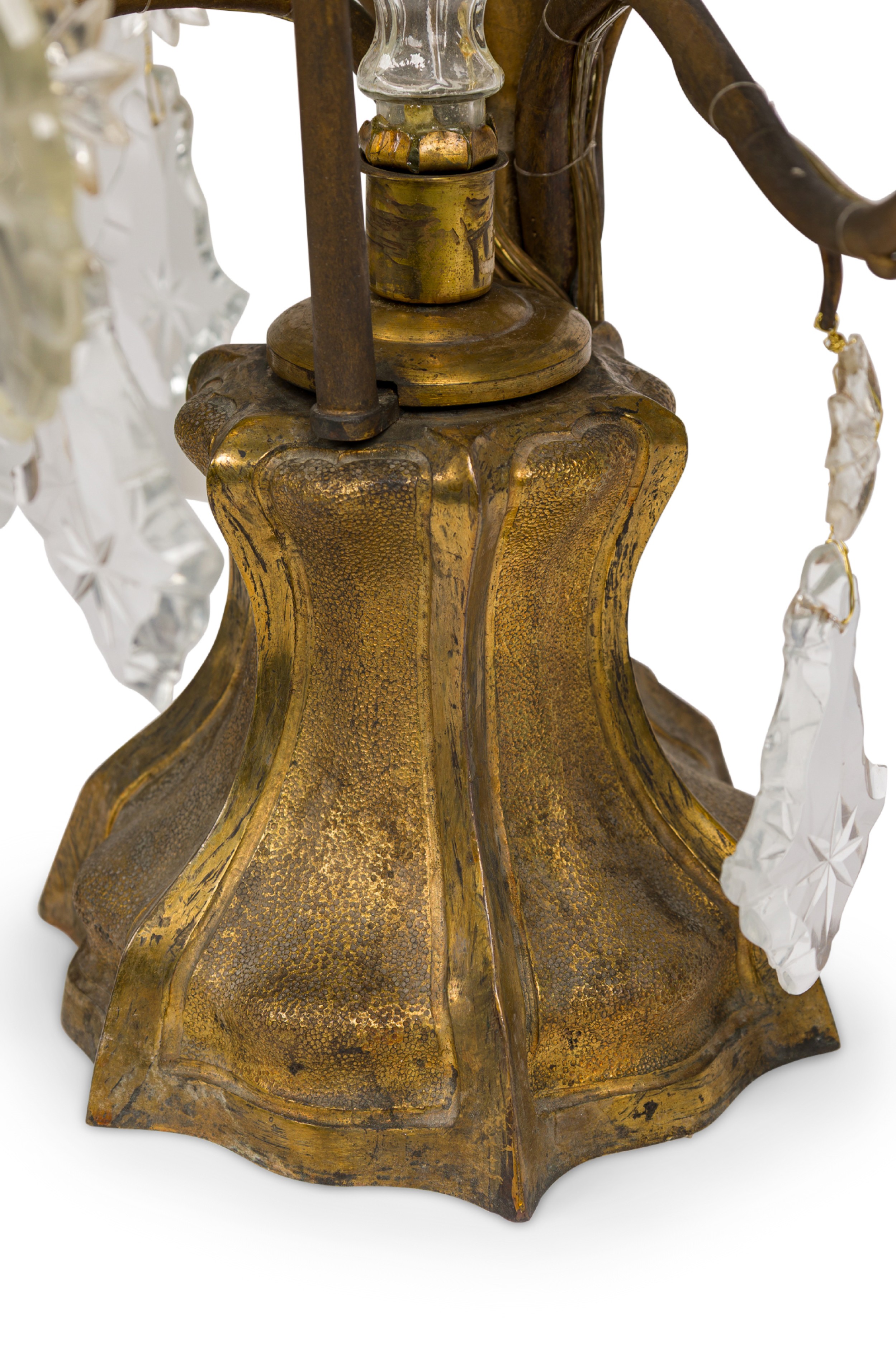 Large Italian Rococo Gilt Metal and Crystal Candelabra