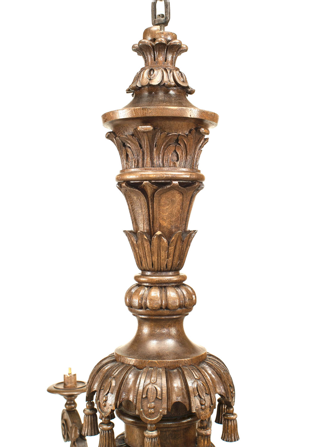 Style: Italian Materials & Techniques: Carved, oak, tassel Category: Lighting