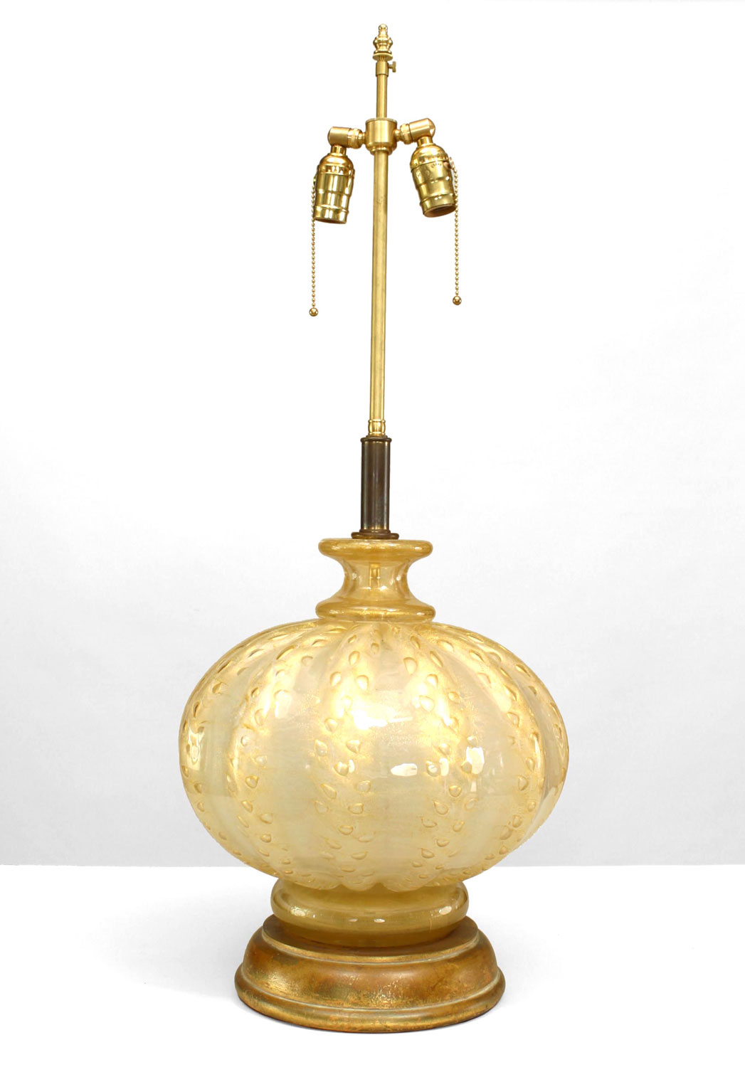 Style: Mid-Century Materials & Techniques: Glass, gold, wood Category: Lighting Condition: Ships wihtout a shade