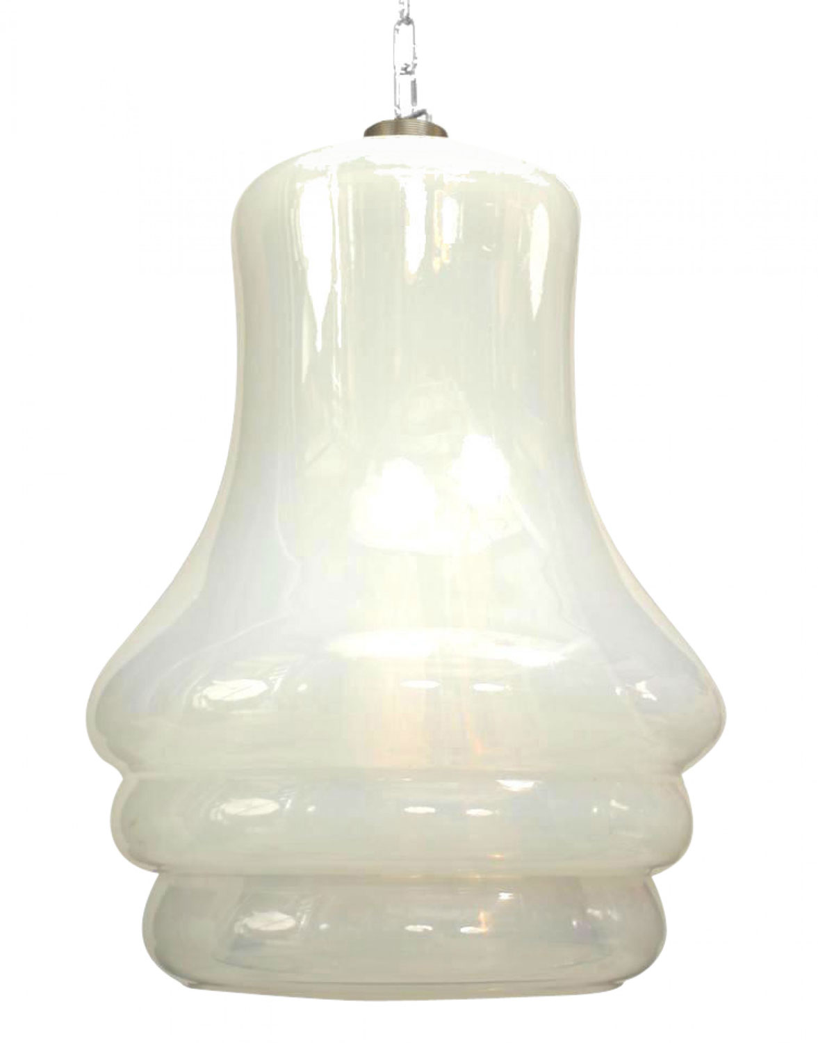 Italian 1960s Venetian Murano opalescent milky glass lantern with 3 tier bell shape and inner shade (VISTOSI).