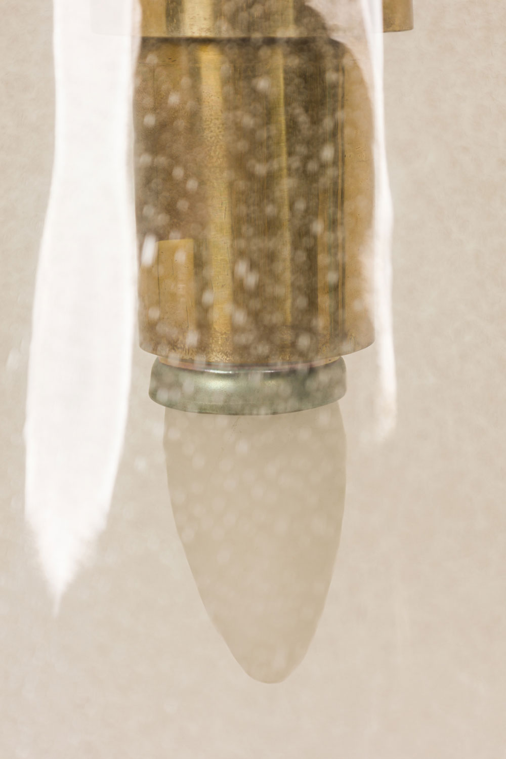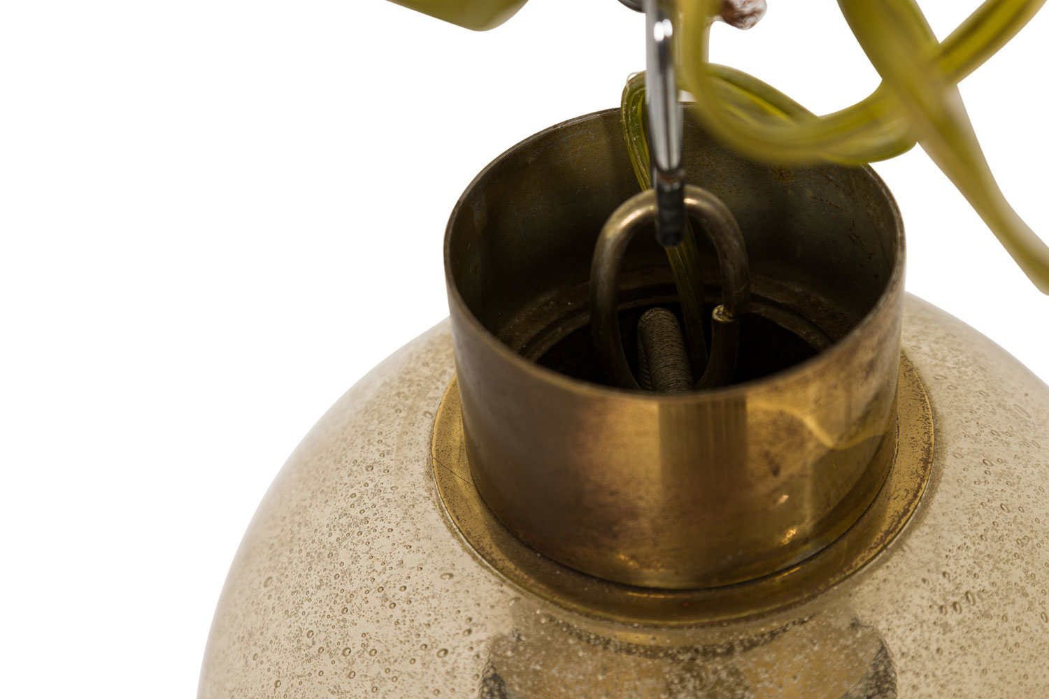 Style: Mid-Century Materials & Techniques: Brass, glass, gold Category: Lighting Condition: Inner glass lantern is missing. Please request updated photos.