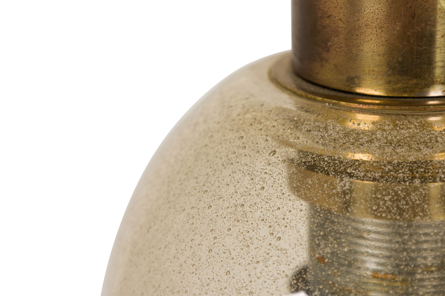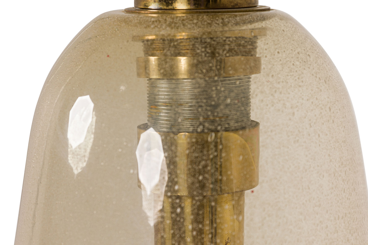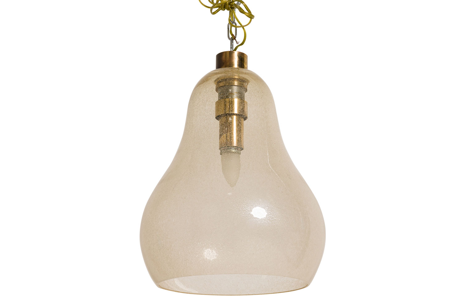 Italian 1940s Venetian Murano "Pulegoso" lantern with a gold dusted tear drop bell shaped glass shade with brass top and canopy.