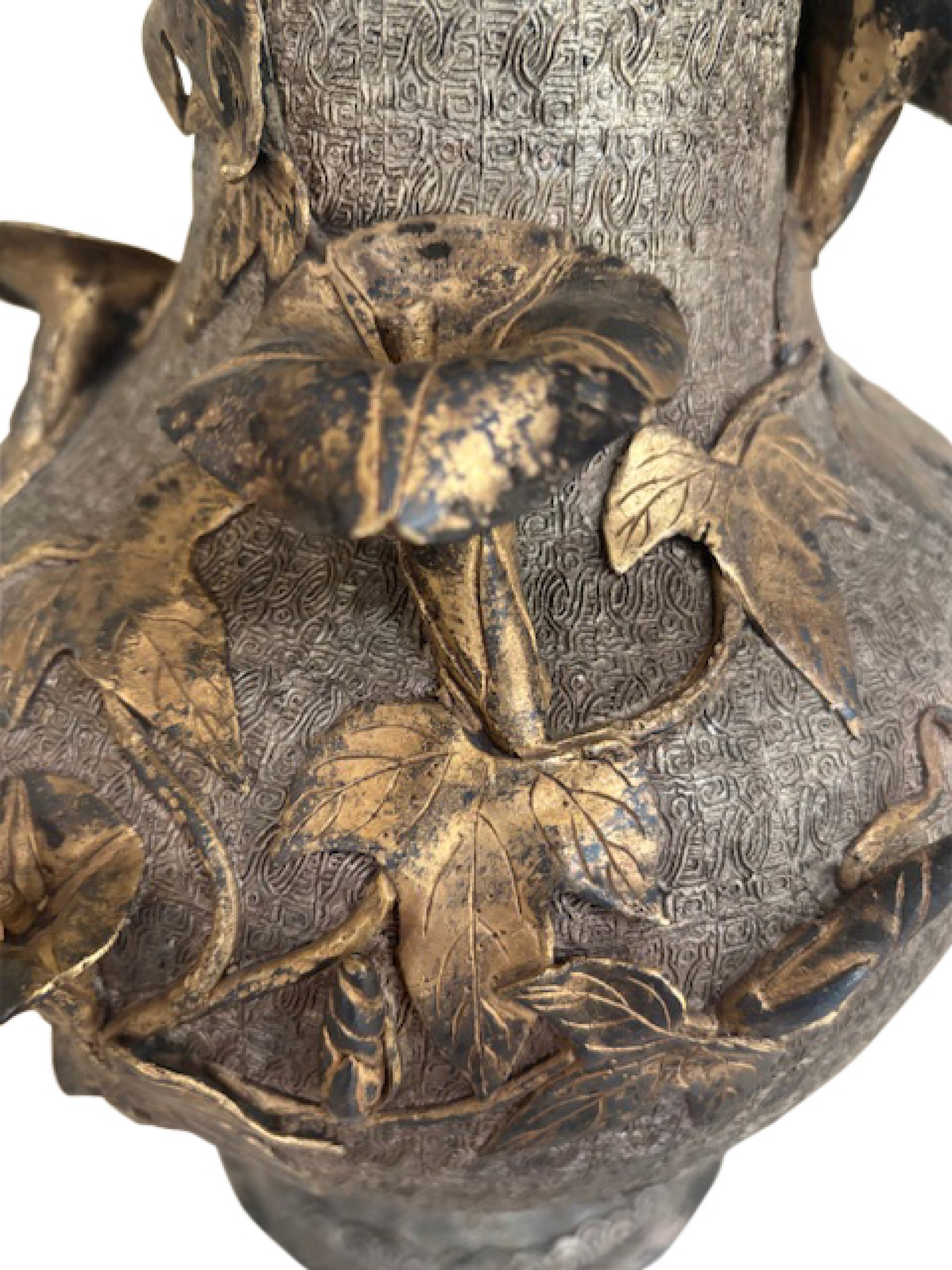 Japanese Meiji Bronze Silver and Gilt Trim Vase