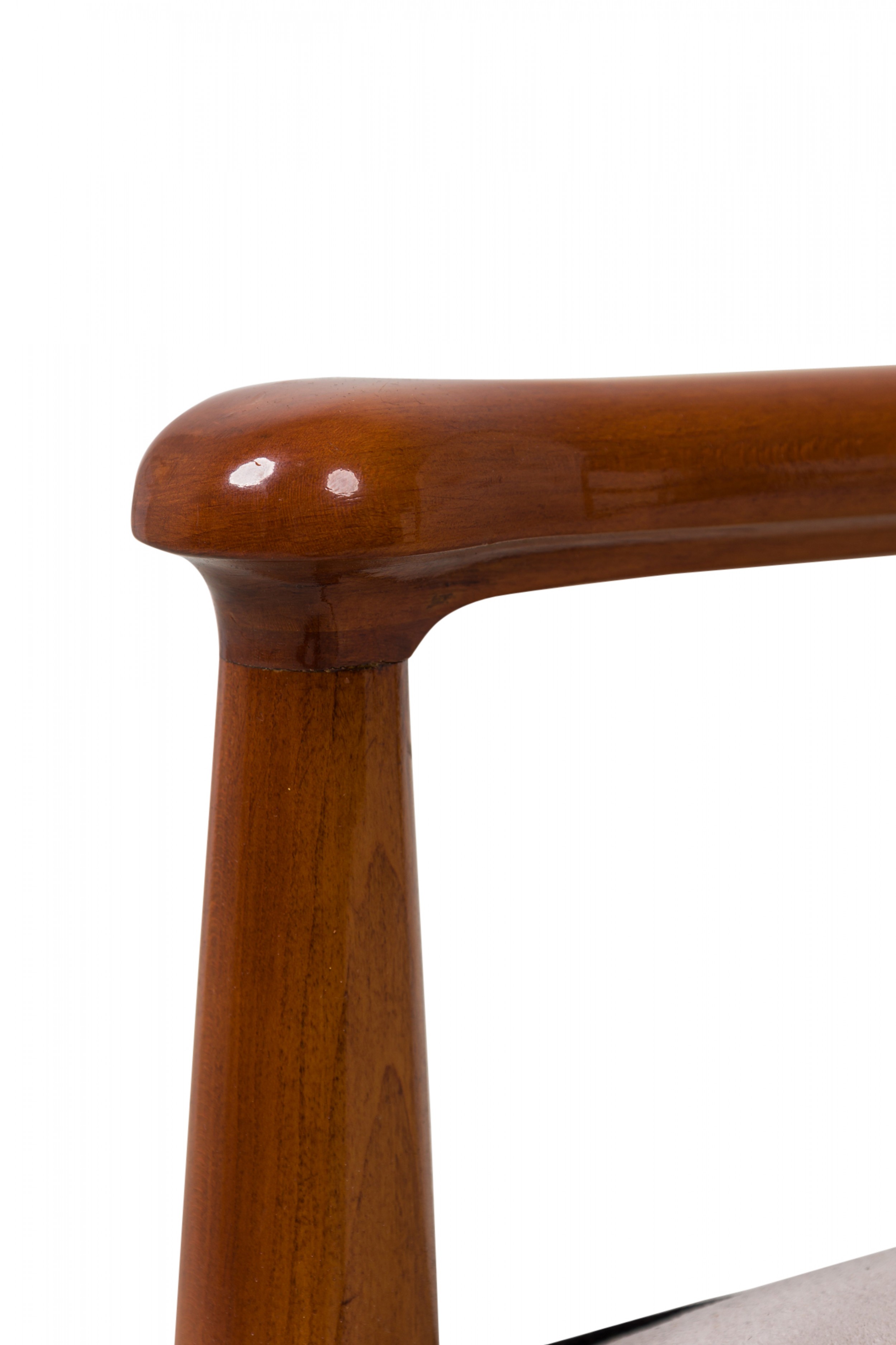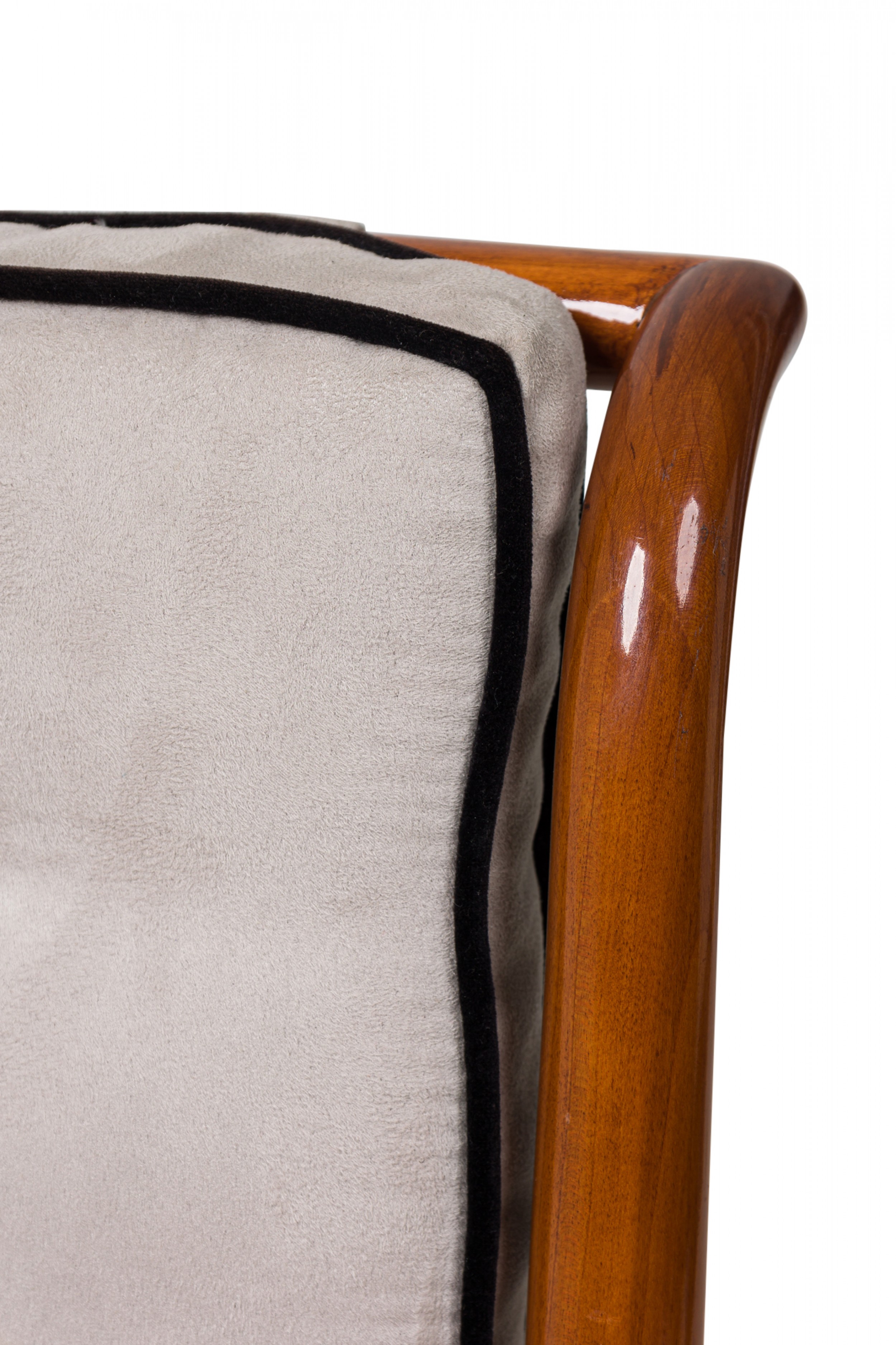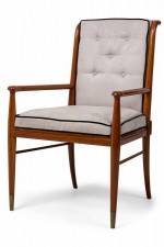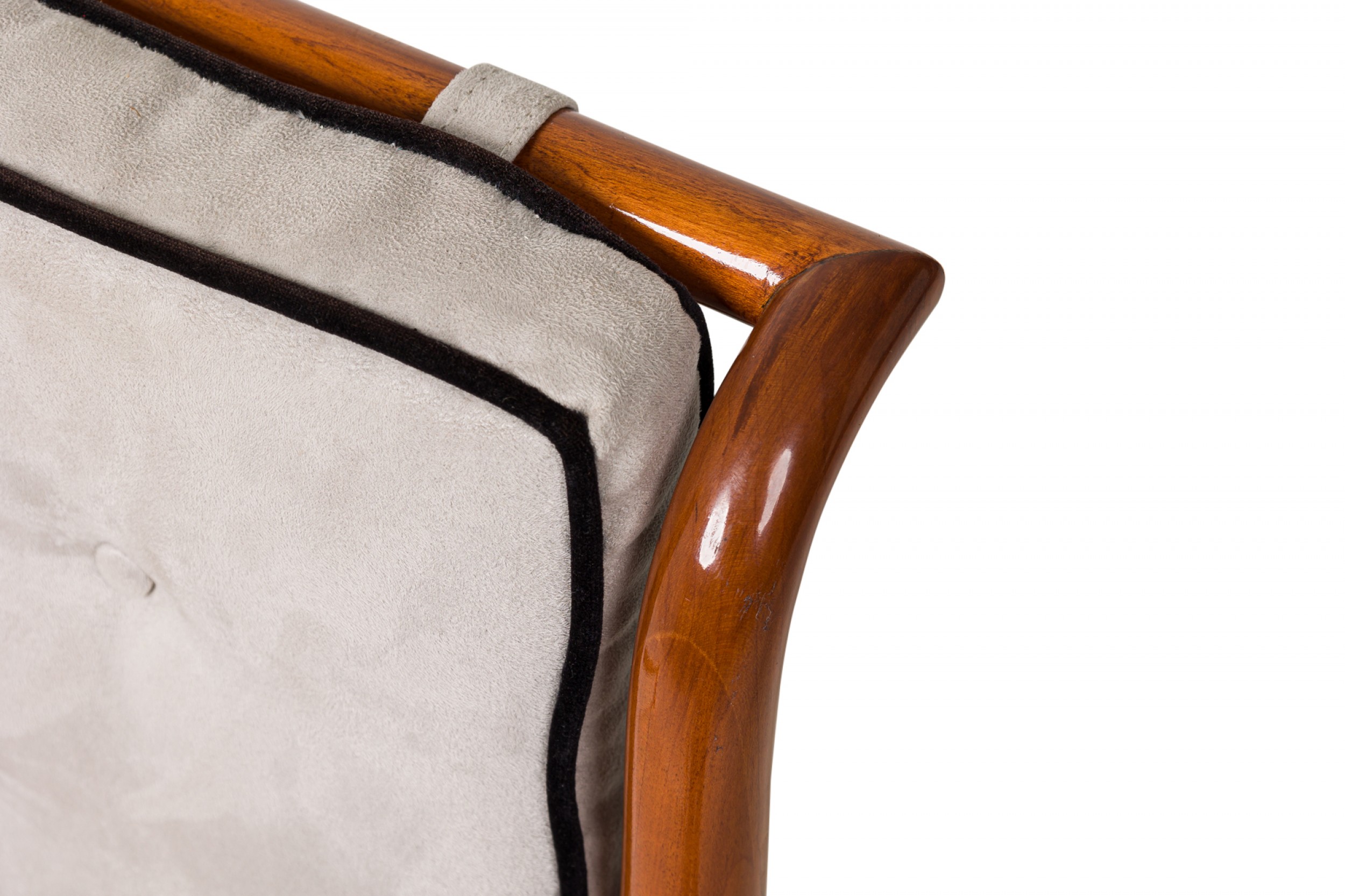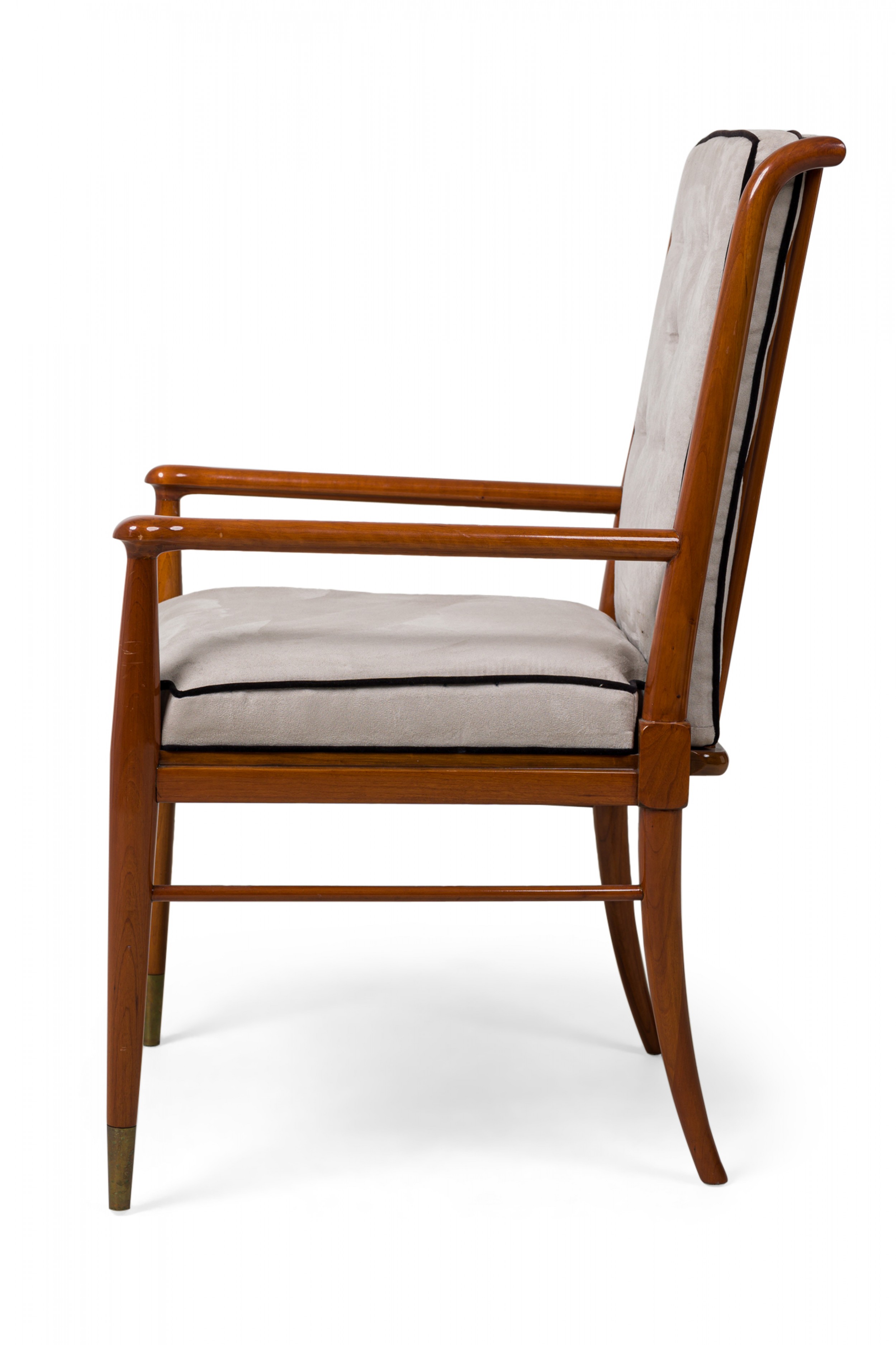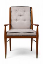 John Stuart Mid-Century American Walnut and Brass Gray Suede Upholstered Armchair