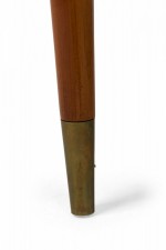 Style: Mid-Century Materials & Techniques: Brass, lacquered, metal, suede, tufted, upholstered, walnut, wood Category: Seating Condition: Wear consistent with age and use, discoloration to upholstery. Good; Wear consistent with age and use