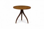 American Mid-Century circular end / side table with an inlaid central hexagonal star design supported by a wooden tripod base. (KIPP STEWART FOR DREXEL).
