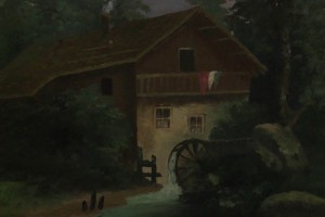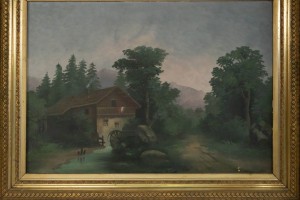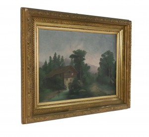 Landscape Oil Painting of a Windmill in a Decorative Gold Frame