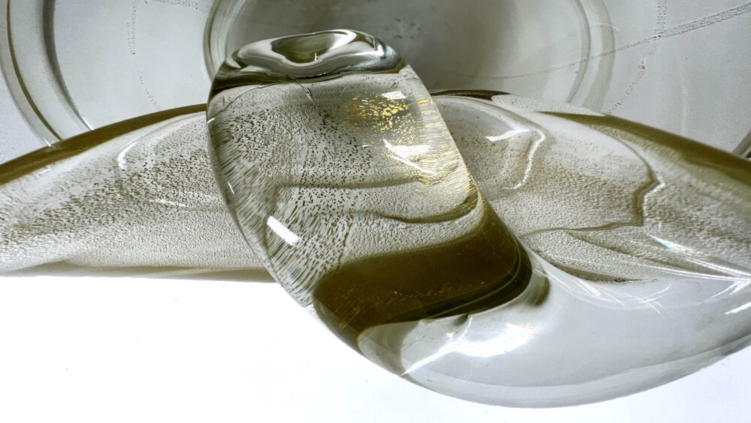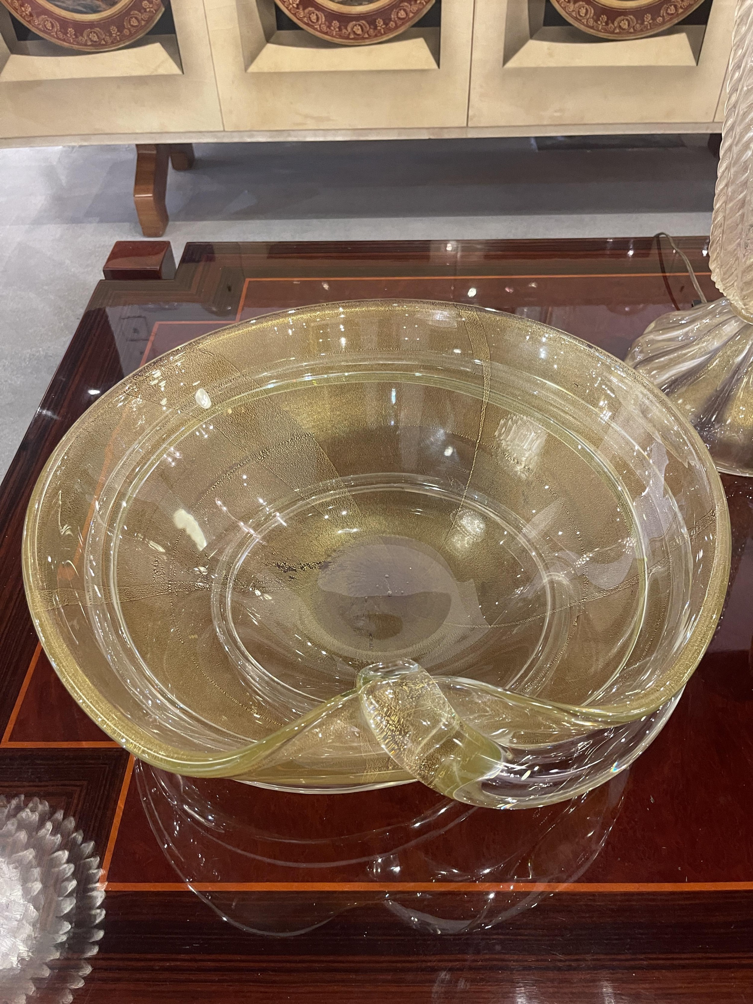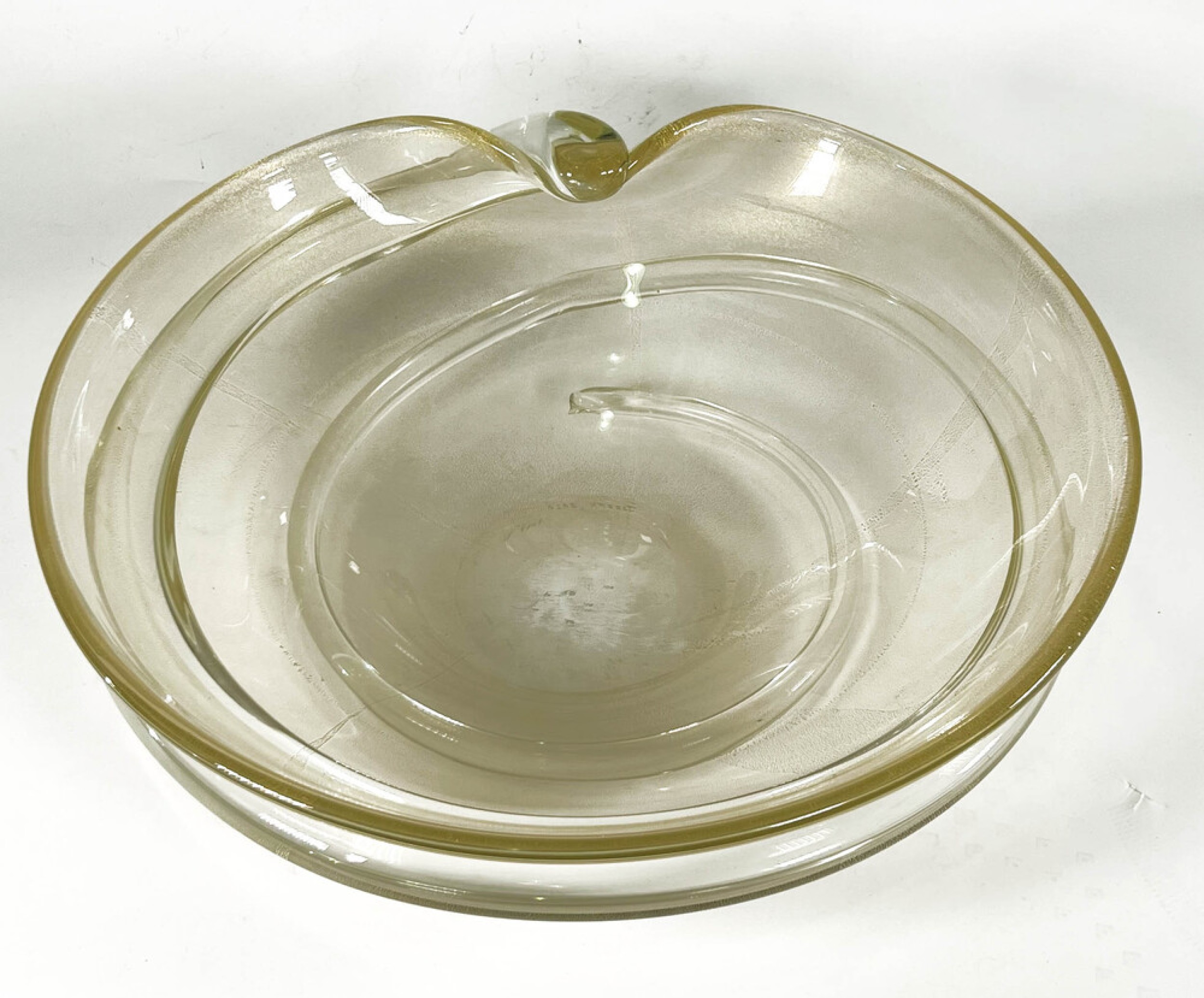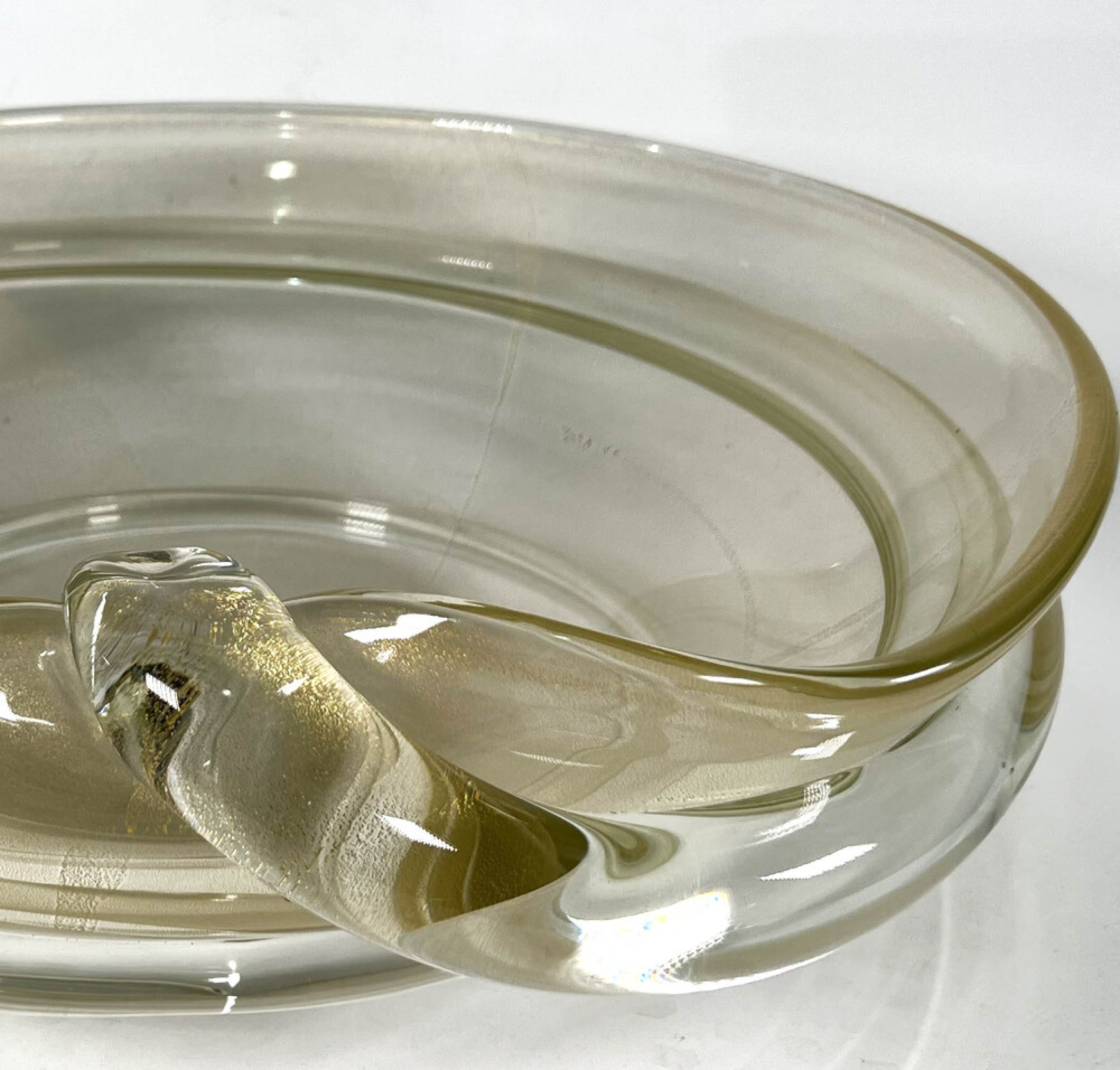 Italian Mid-Century Hand Blown Gold Dusted Murano Bowl
