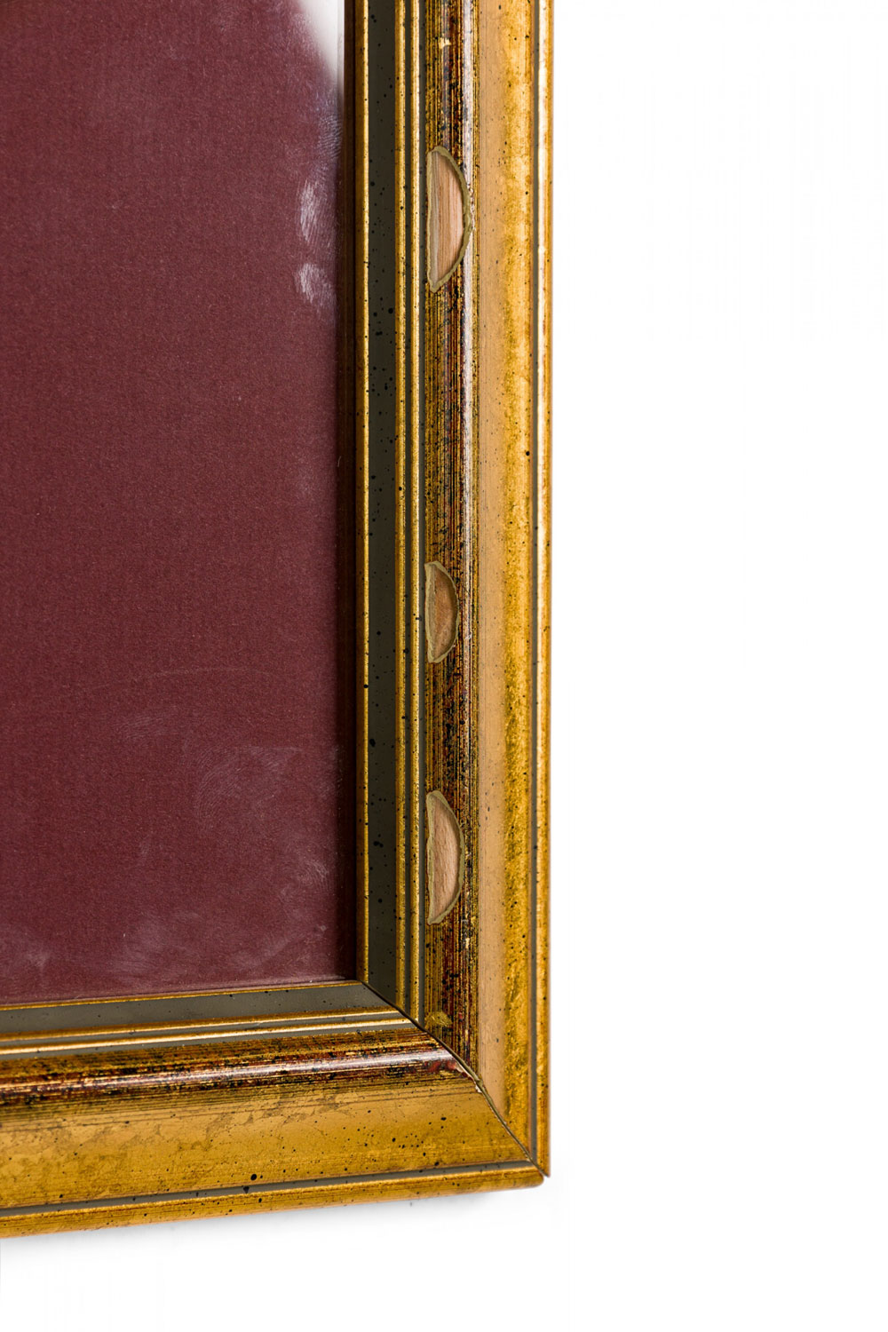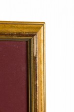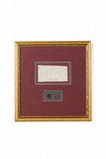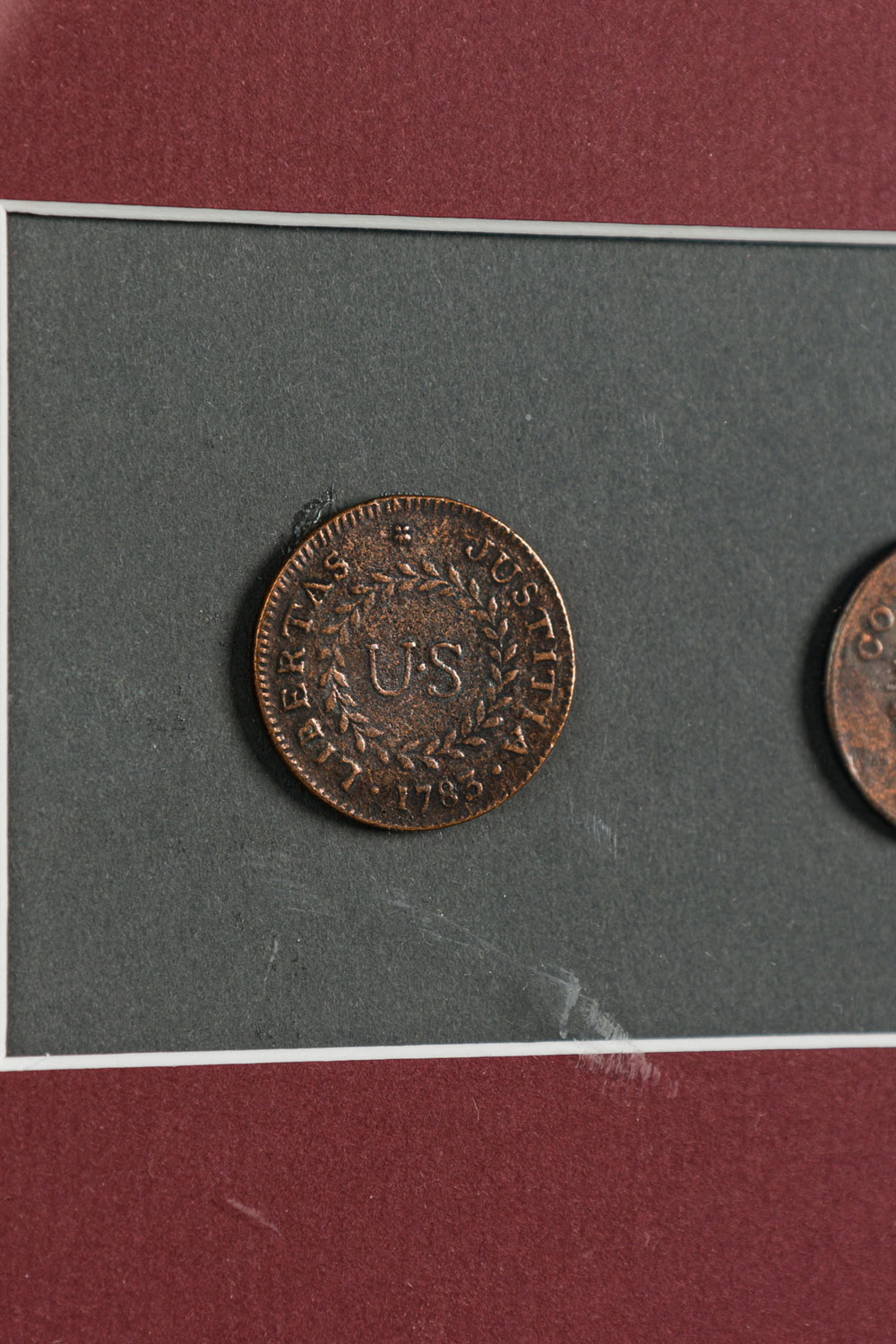 Letter Fragment and Antique Coins in Burgundy Matting and a Gilt Frame