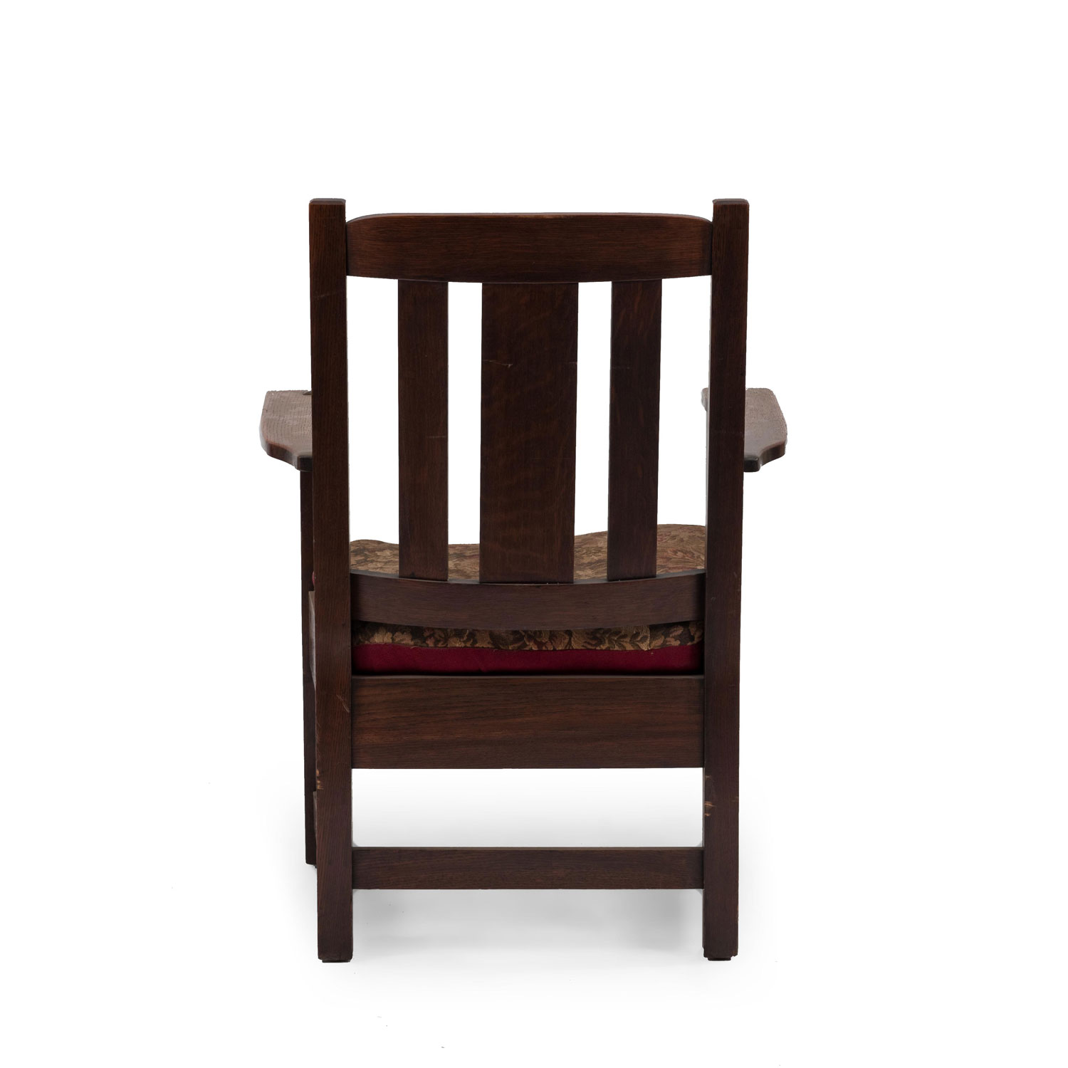 American Mission oak armchair with triple slat design back and tapestry seat. (signed LIMBERT, under arm).
