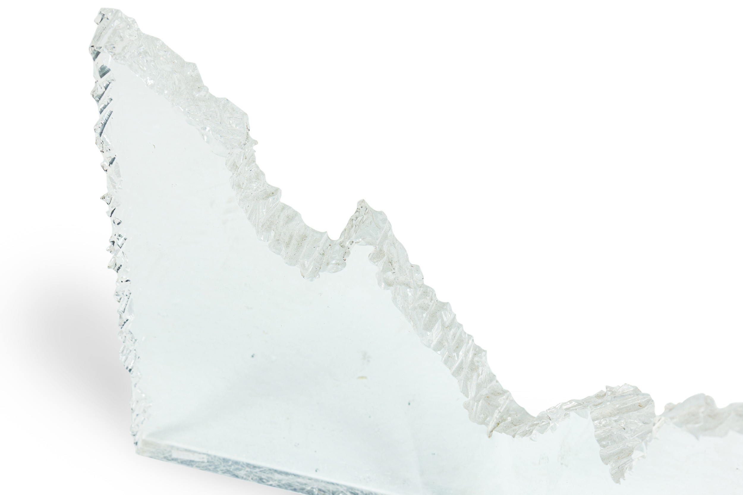 Mid-Century American lucite cocktail / coffee table made up of 2 iceberg form bases with the longer base being U-shaped and the shorter is V-shaped. (signed, LION IN FROST)