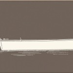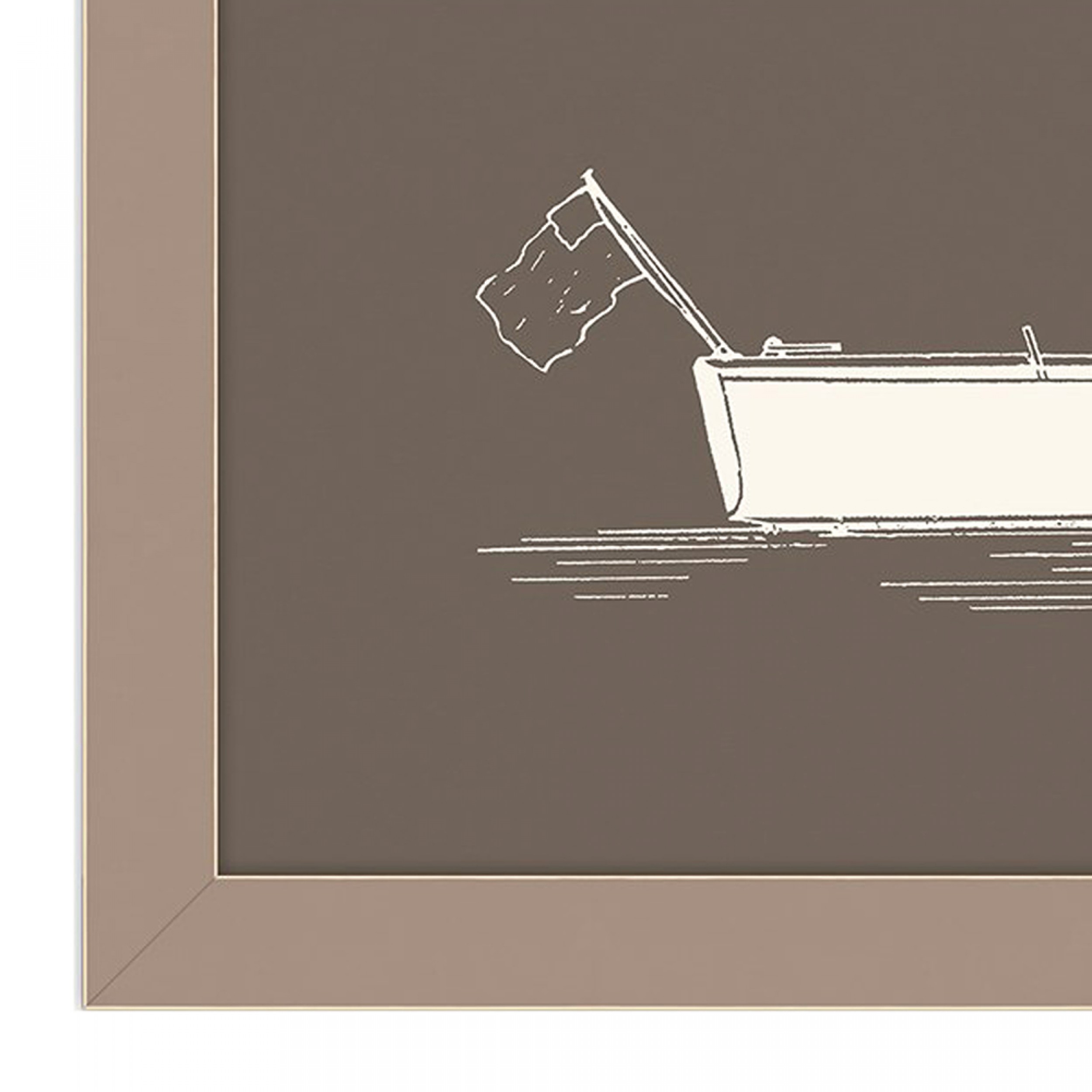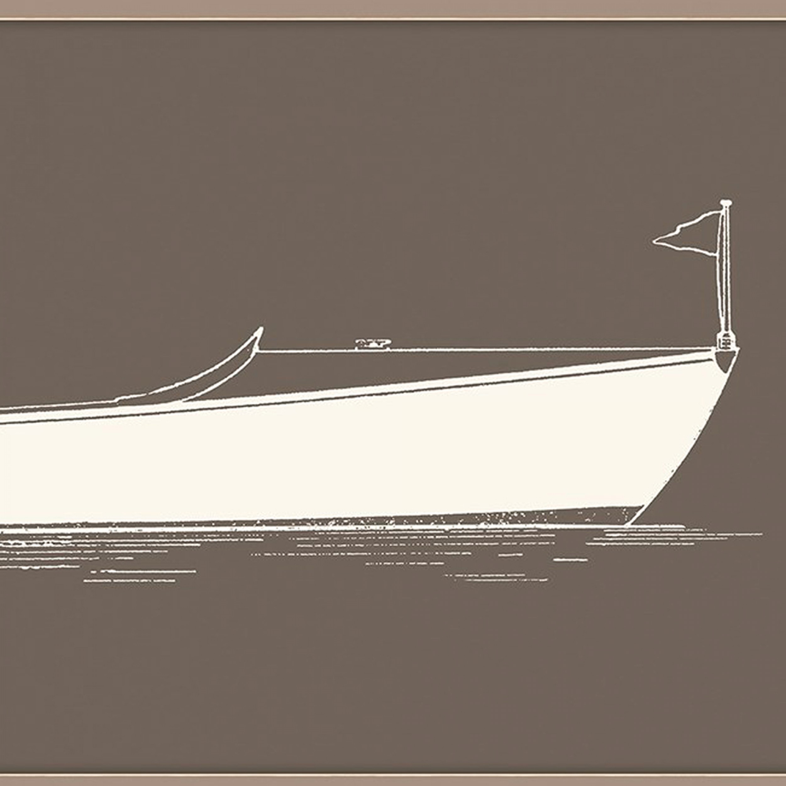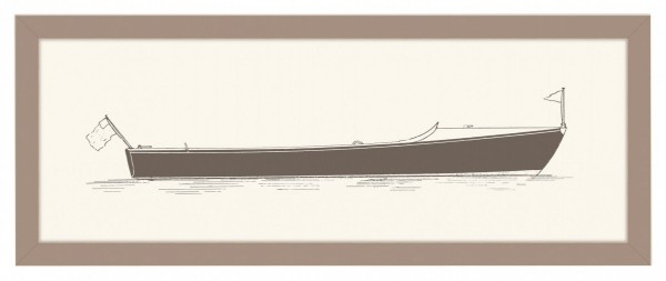 "Long Boat II", black and white Giclee art print framed in a cappuccino colored frame (See also: 060790).