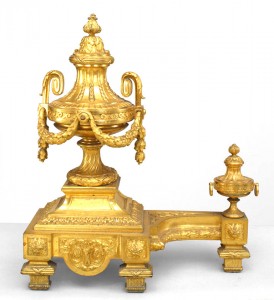 Pair of Louis XVI Bronze Dore Urn Andirons
