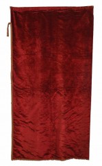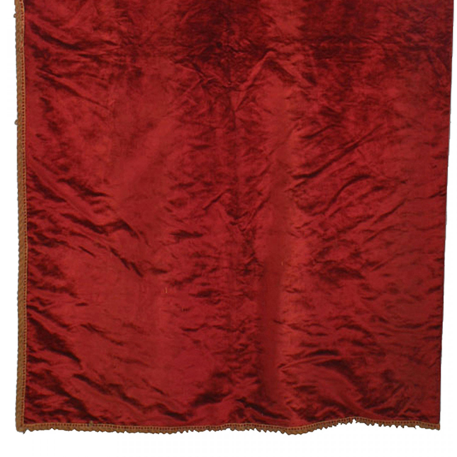 English Victorian style single maroon velvet drape with corded border on 2 sides..