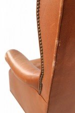 Style: Mid-Century Materials & Techniques: Brass, leather, metal, tufted, wood Category: Seating, Office/Library