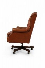 Mid-Century American Brown Tufted Leather Swivel Office / Armchair