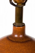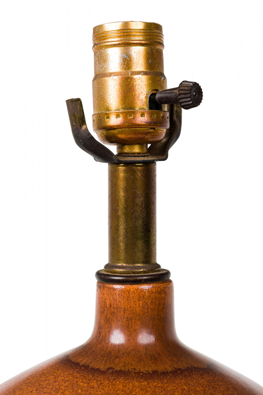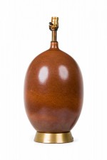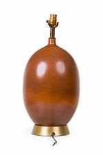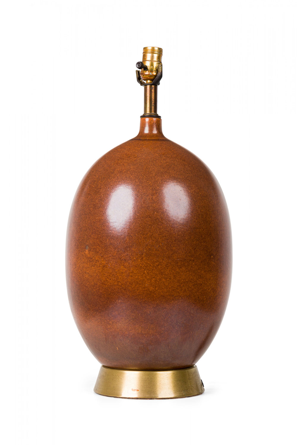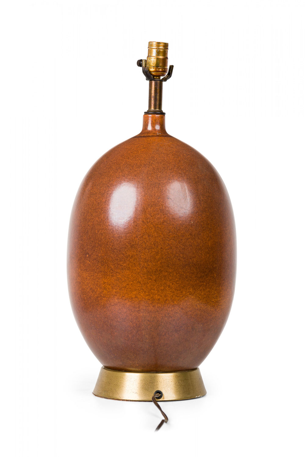 Mid-Century American Ceramic Brown Egg Form Table Lamp on Brass Base