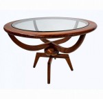 Mid-Century American Modern Round Wood & Glass Coffee Table