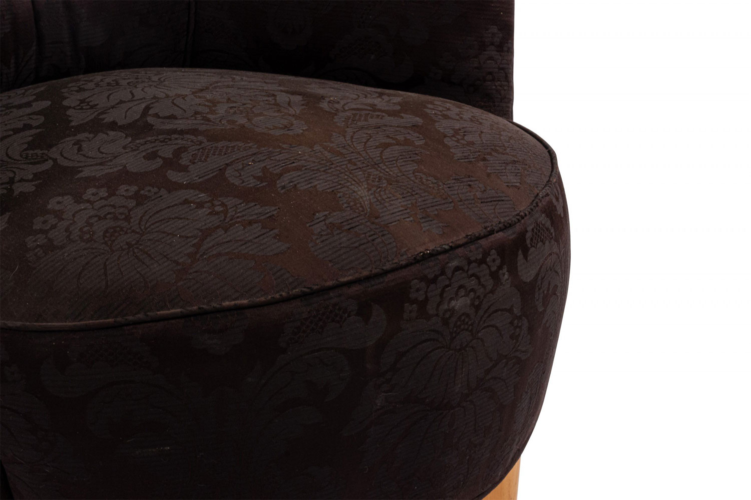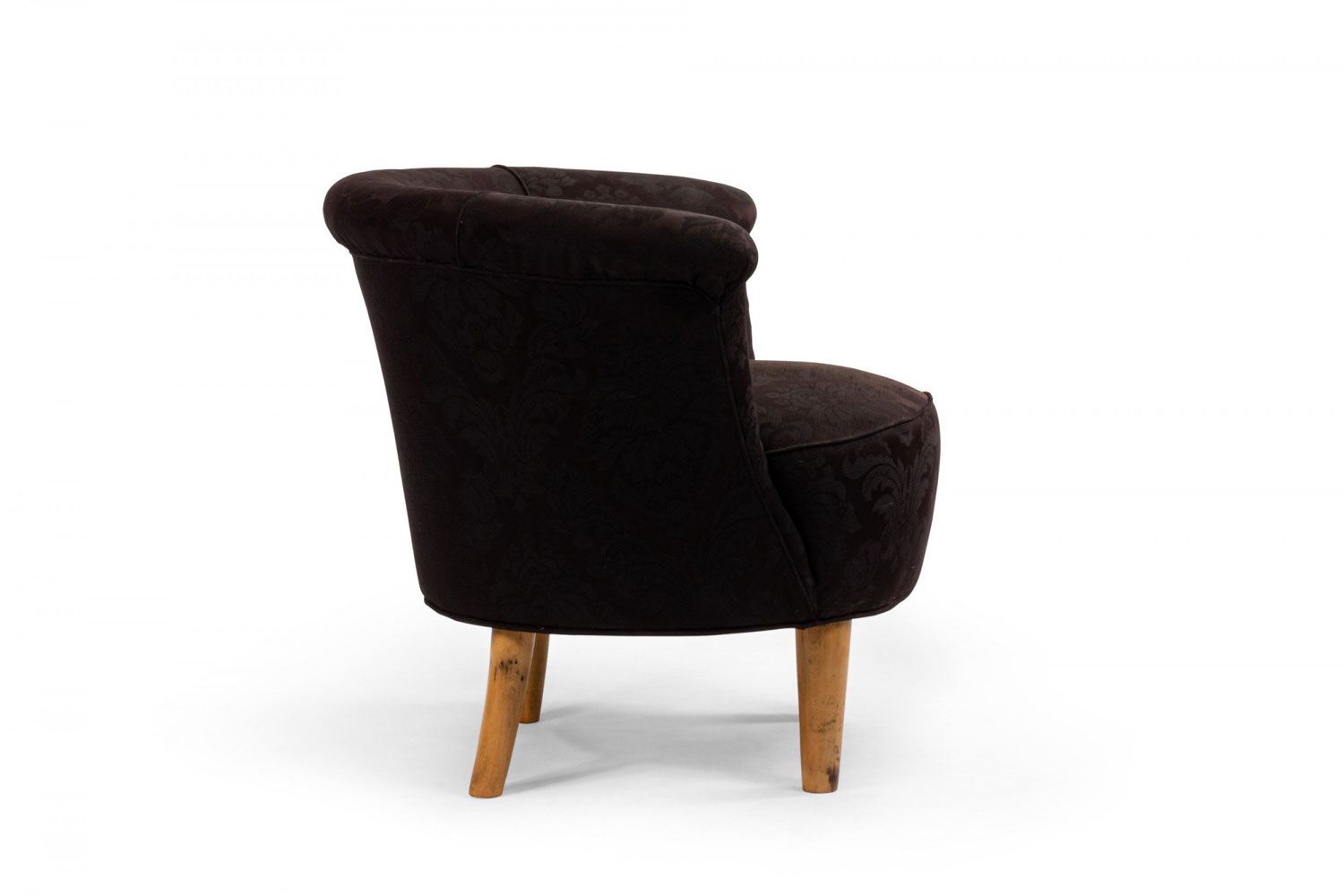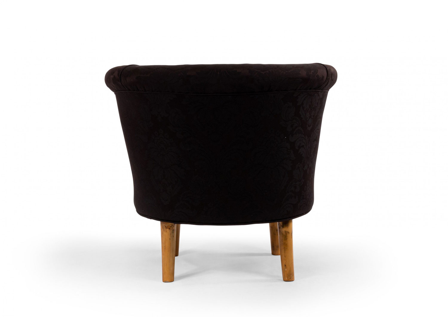 American Art Moderne/contemporary tub chair with black upholstered low round back supported on blond wood tapered round legs.