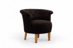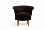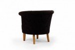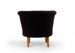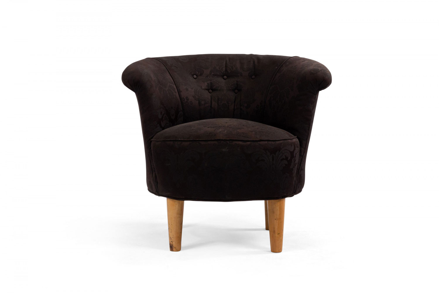 American Art Moderne/contemporary tub chair with black upholstered low round back supported on blond wood tapered round legs..