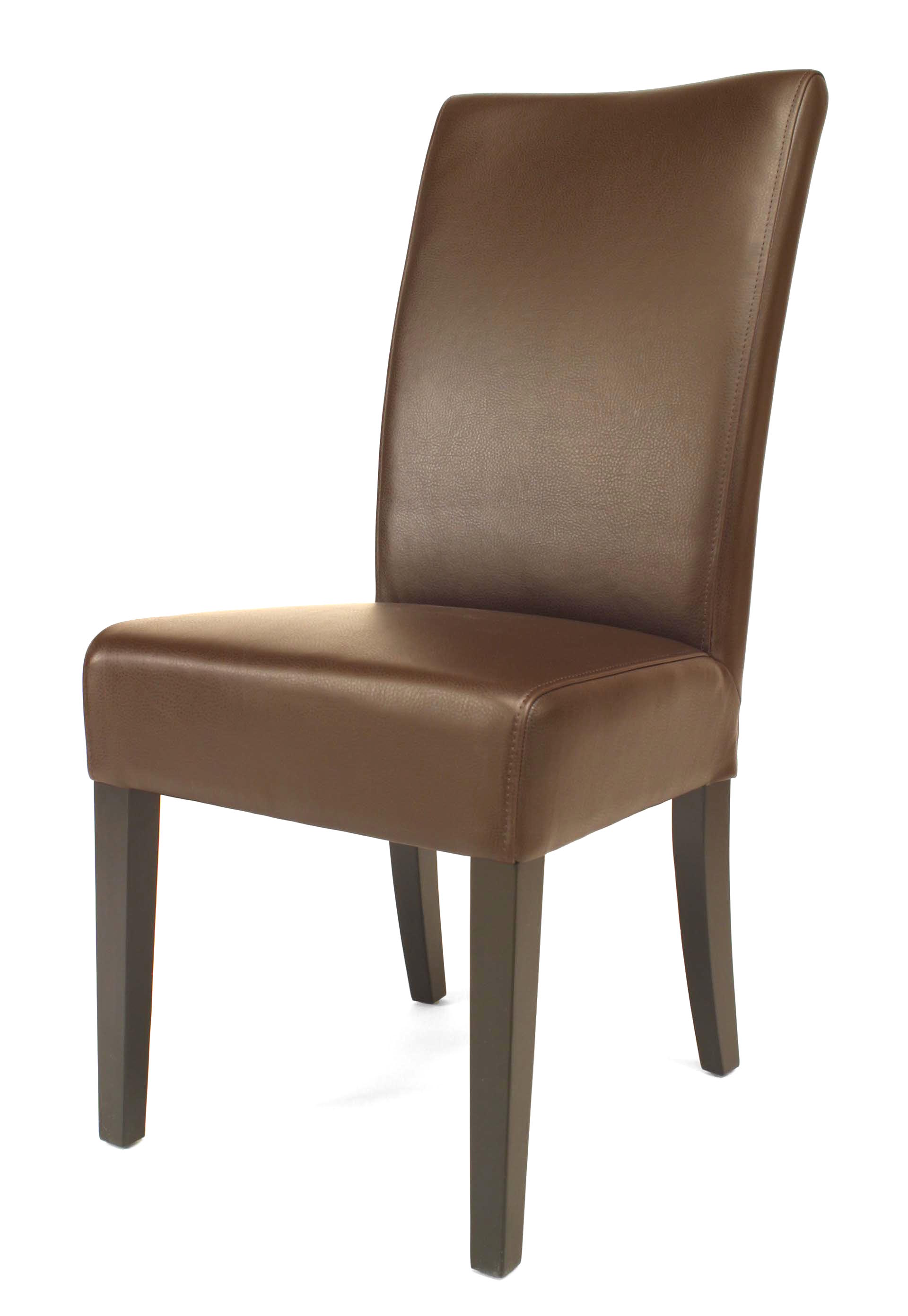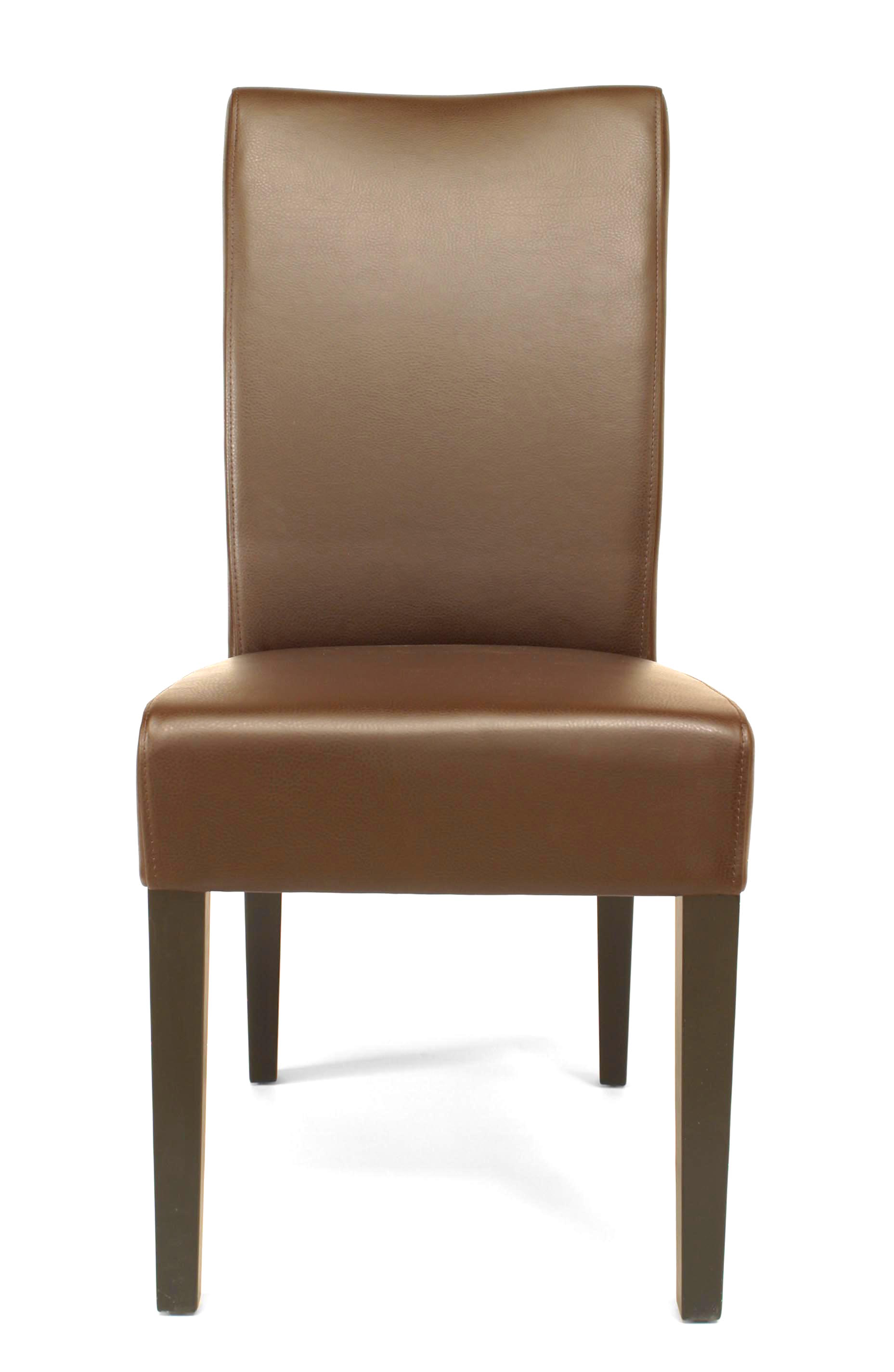 12 Mid-Century modern brown Parsons side chairs with leather upholstered seat & back. (PRICED EACH)