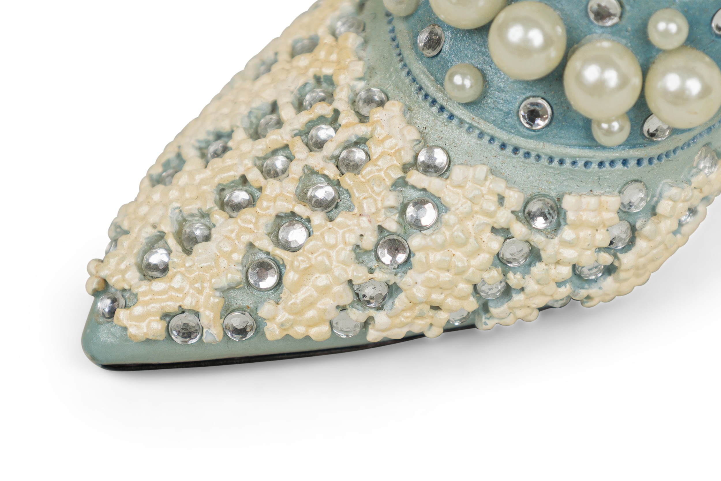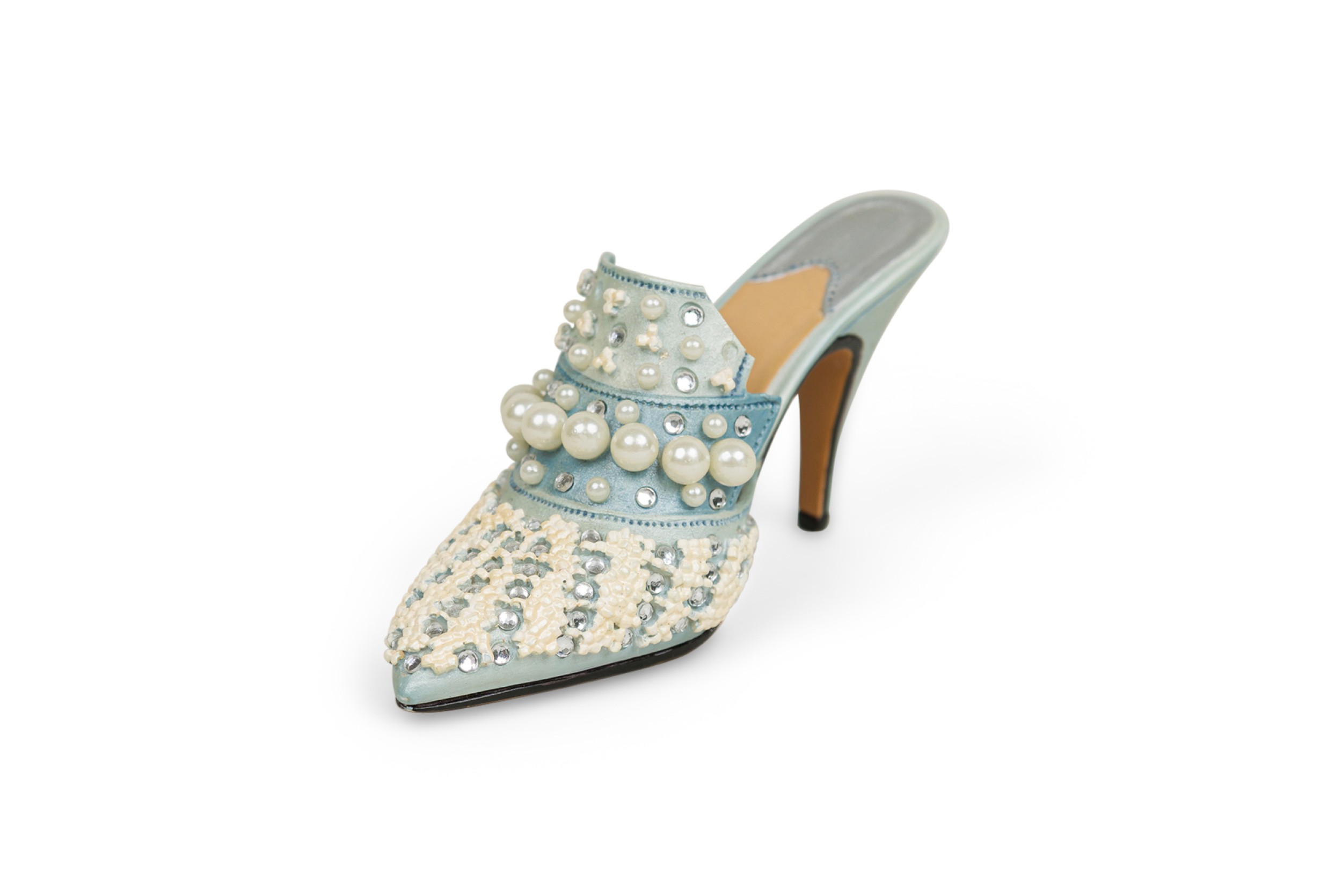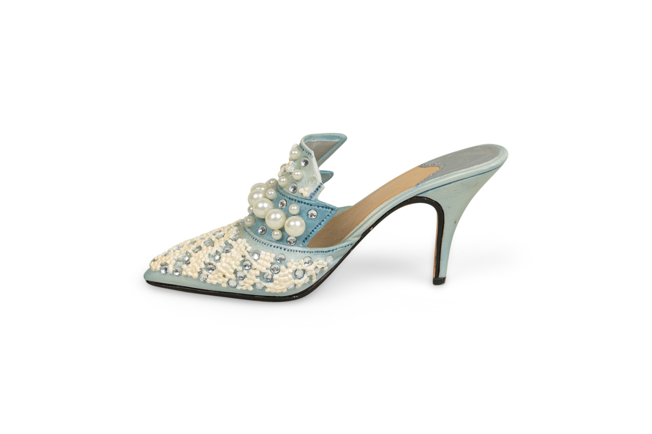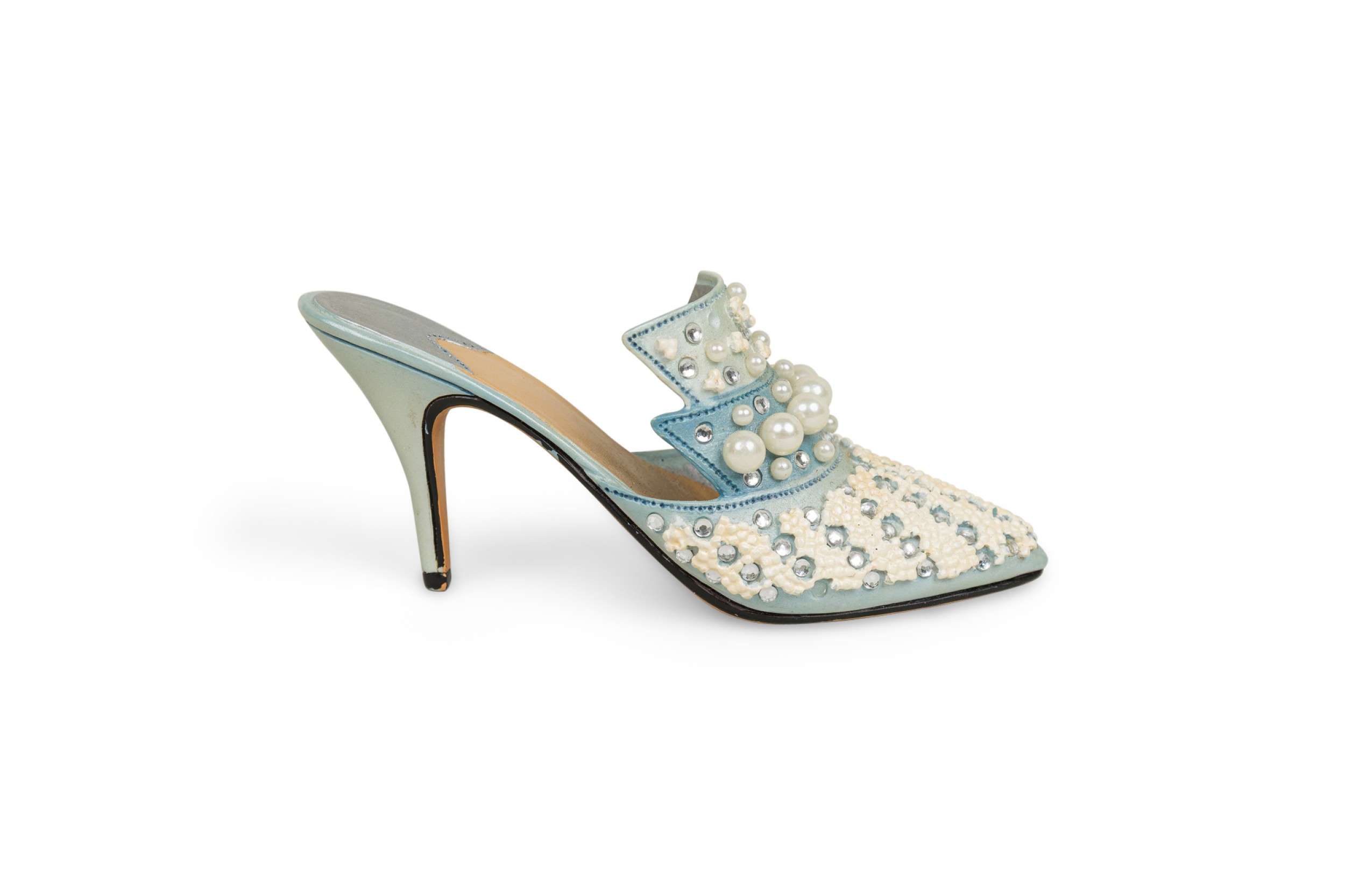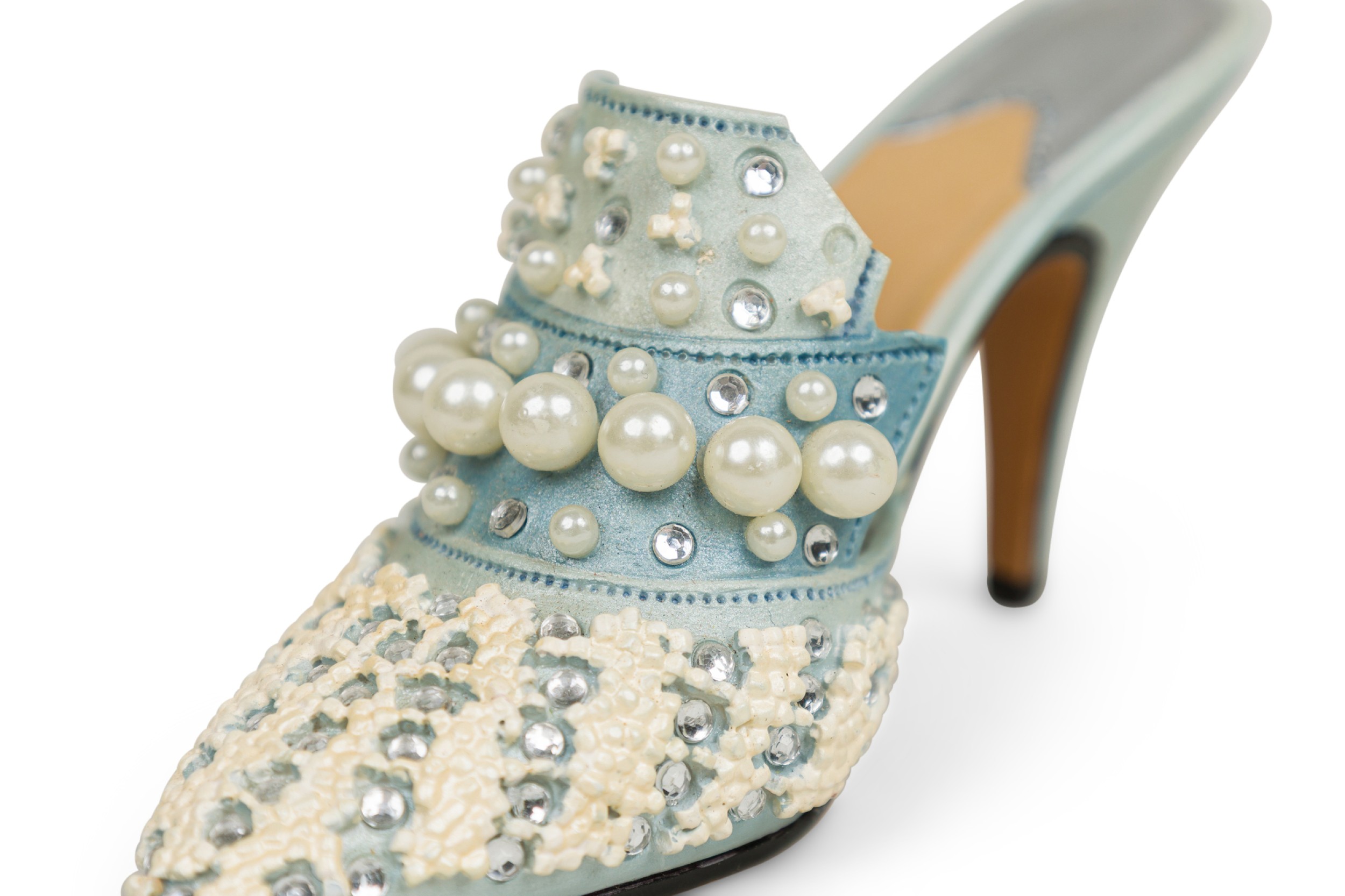 Mid-Century Continental Small Figurine of a Blue Shoe With Pearls