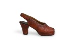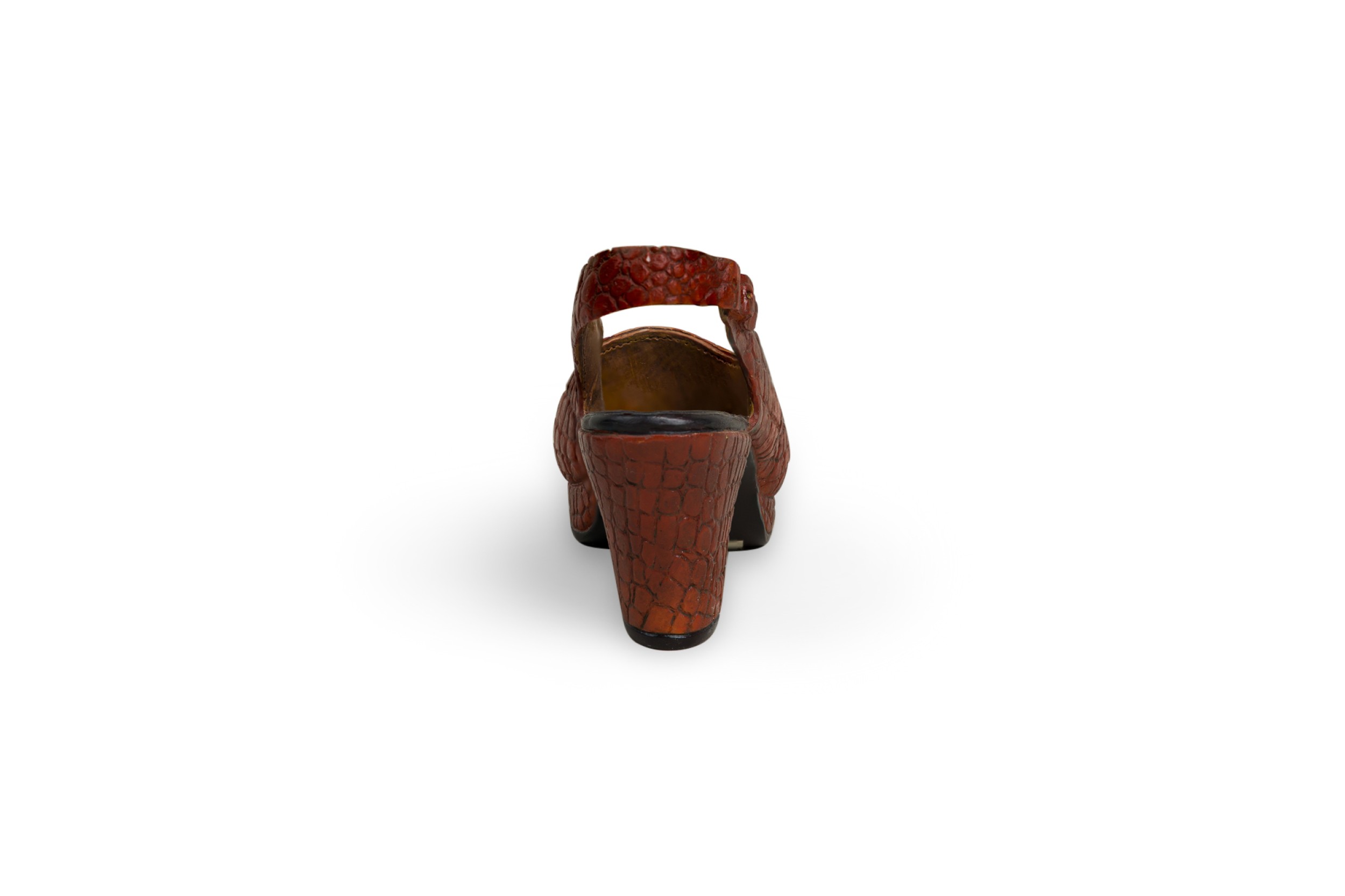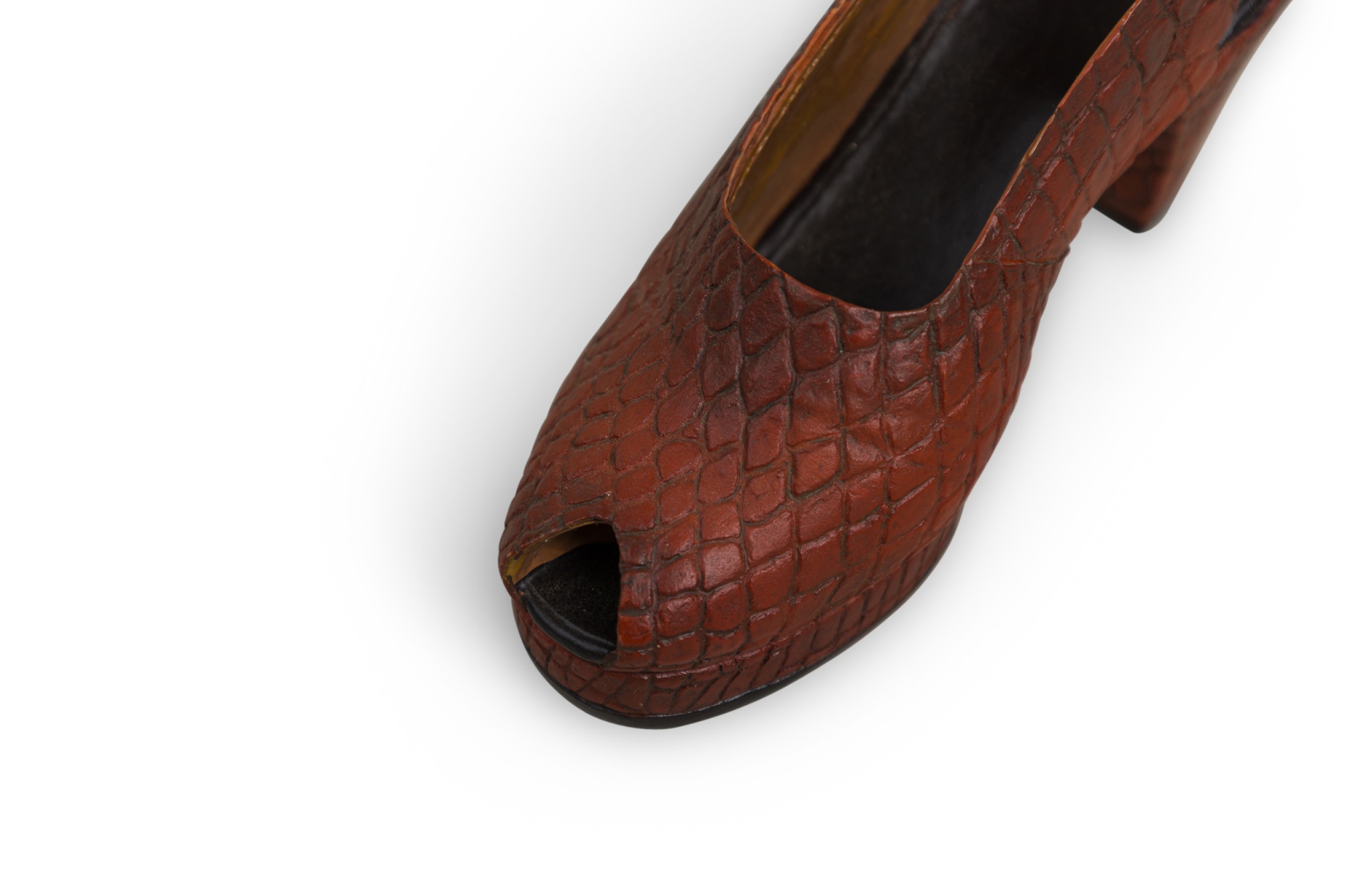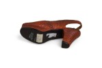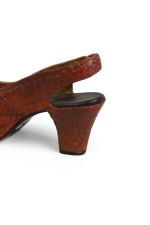 Mid-Century Continental small figurine of a brown open toe shoe with a alligator scales-like design (Collection NWL7892A-M).