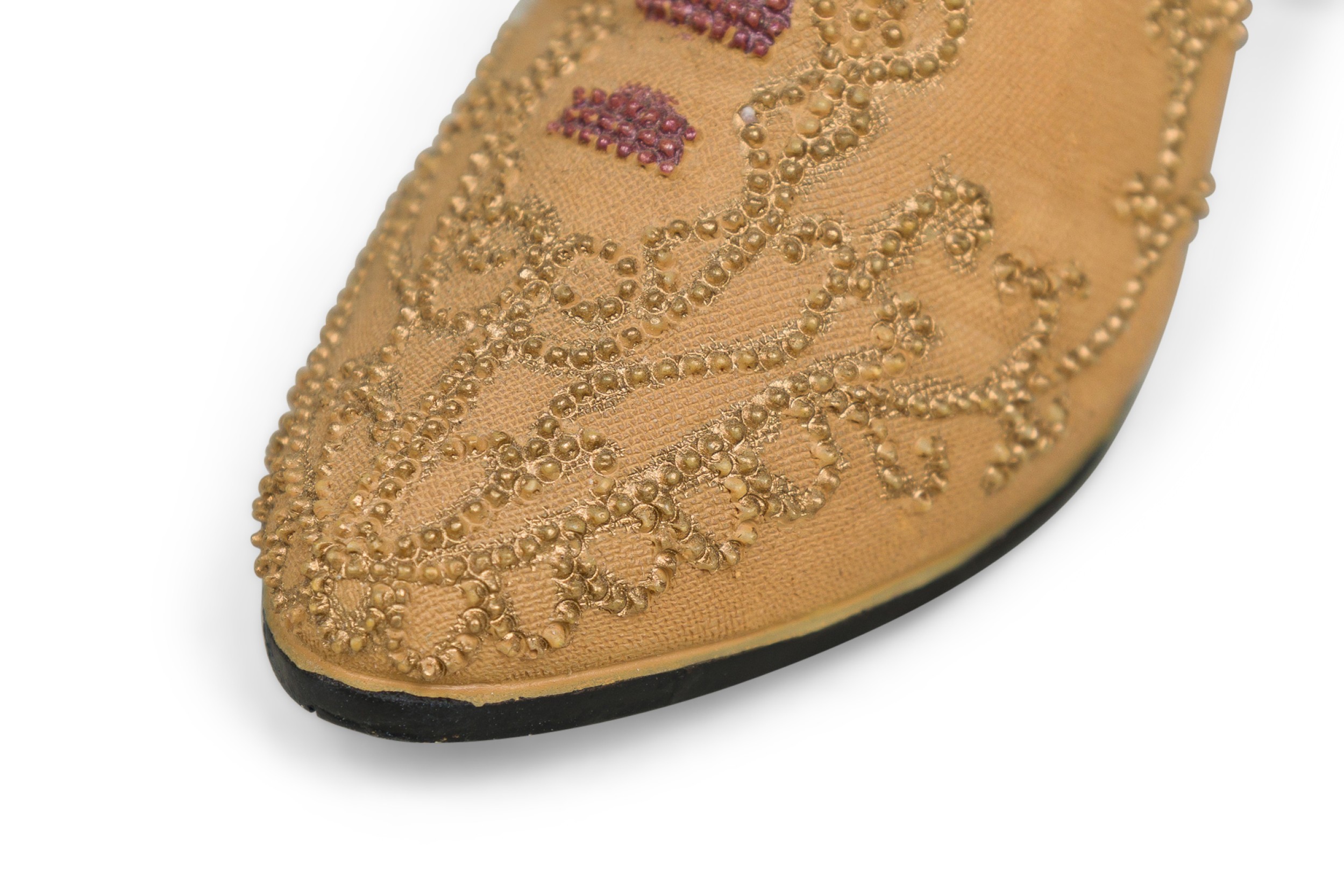 Mid-Century Continental small figurine of a pink high heel shoe with a purple bow (Collection NWL7892A-M)
