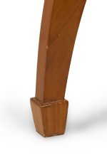Italian Mid-Century Modern circular wood table on an X-form convex base with 4 tapered legs and carved square feet..